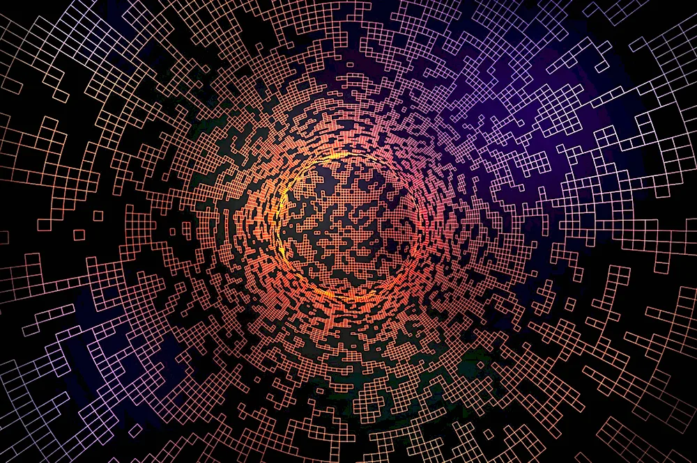 Abstract coding creations - a collection of vibrant, geometric patterns created from lines of code that blend art and technology seamlessly. This series of images conveys the beauty and complexity of digital programming in a visually striking and innovative way.