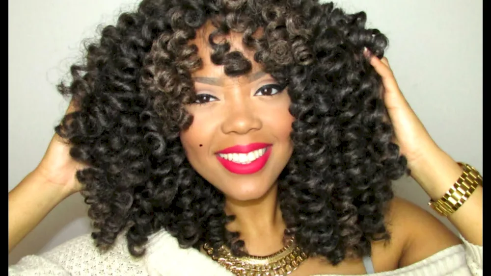 Photos of stunning Afro curls styled in glamorous Hollywood waves, showcasing the perfect blend of natural texture and old Hollywood sophistication. You'll be inspired by the beautiful combination of voluminous curls and classic waves in these images.