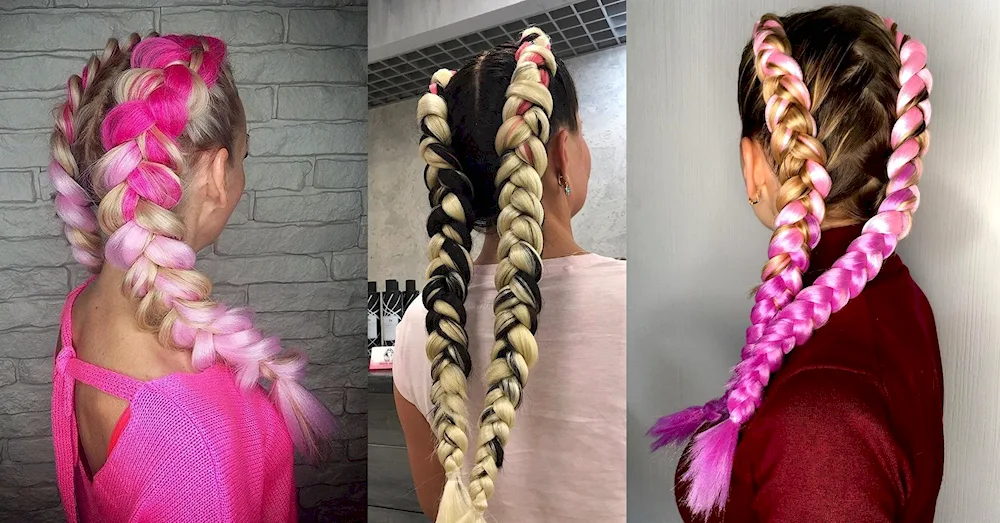 Afro tail braids with kanekalon Photos of stunning Afro hairstyle with vibrant kanekalon braids are a must-see for anyone looking for a bold and stylish look. These images showcase the versatility and beauty of this popular hair trend, perfect for those wanting to make a statement with their hair.
