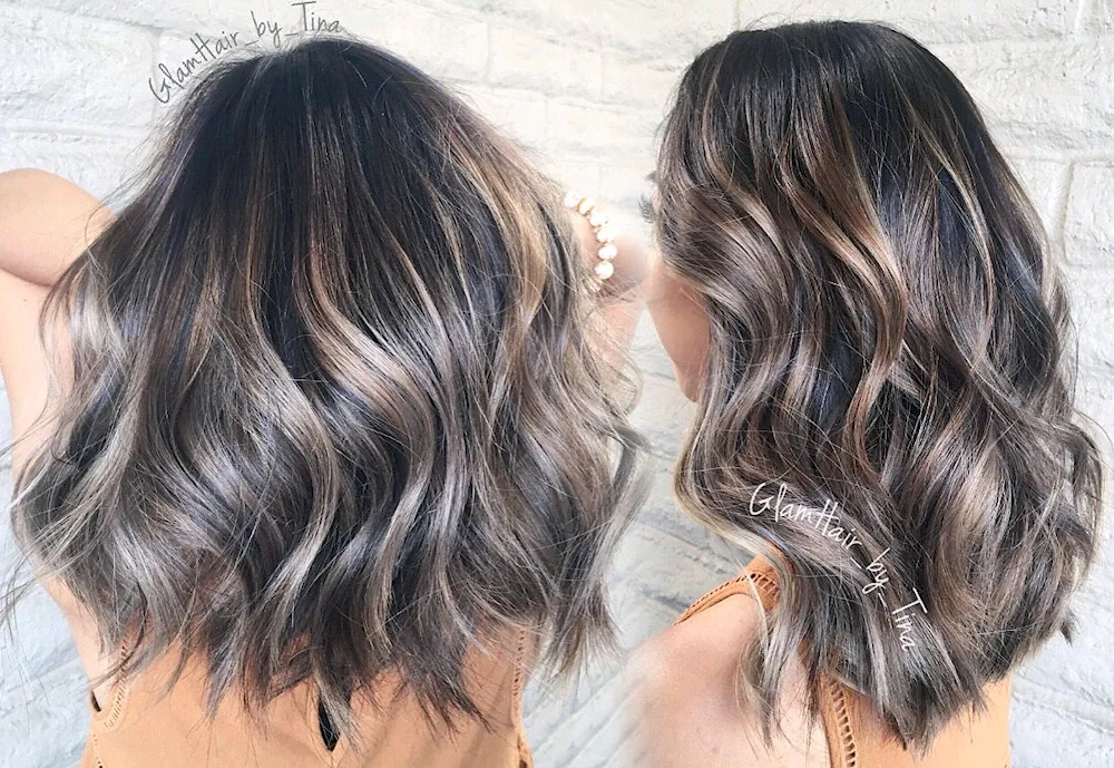 Coloring gray hair with air touch technique: A series of photos showcasing different styles and shades of gray hair being expertly colored using the air touch method. These images offer inspiration and ideas for those looking to refresh their gray hair with a natural and seamless look.