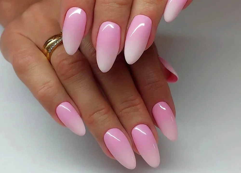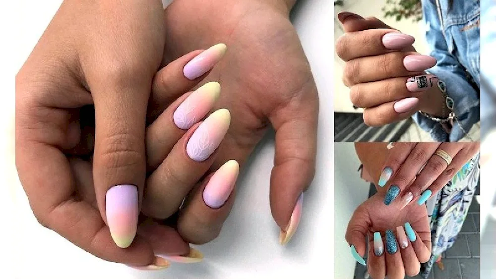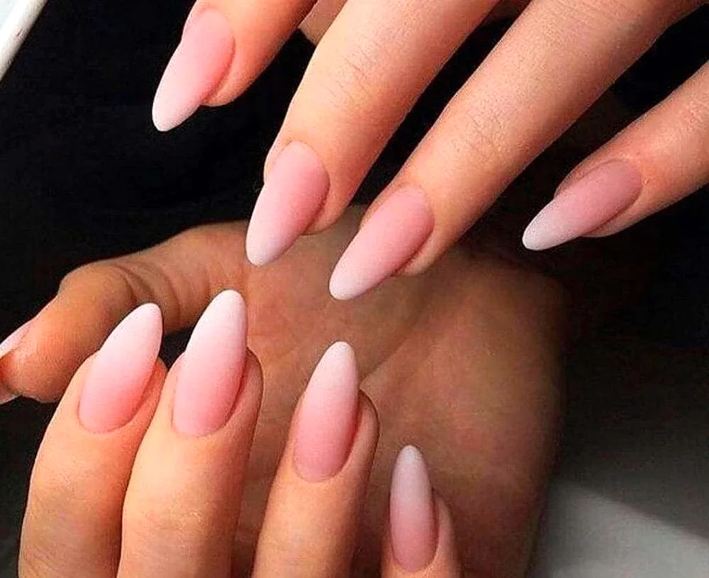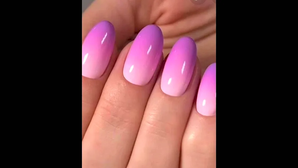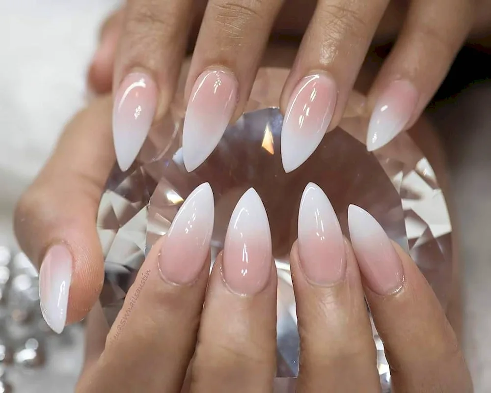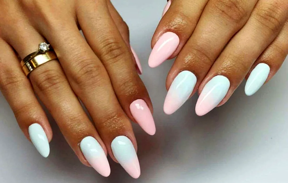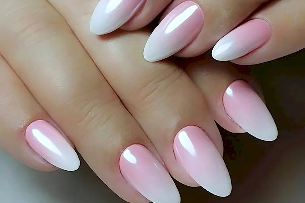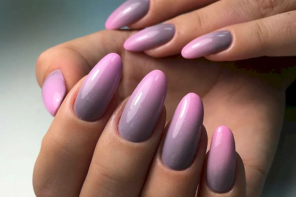 Here are some photos of beautiful almond-shaped nails with a trendy Ombre design. The gradual transition of colors creates a stylish and unique look that you'll love. Check out these stunning nail ideas for your next manicure!
