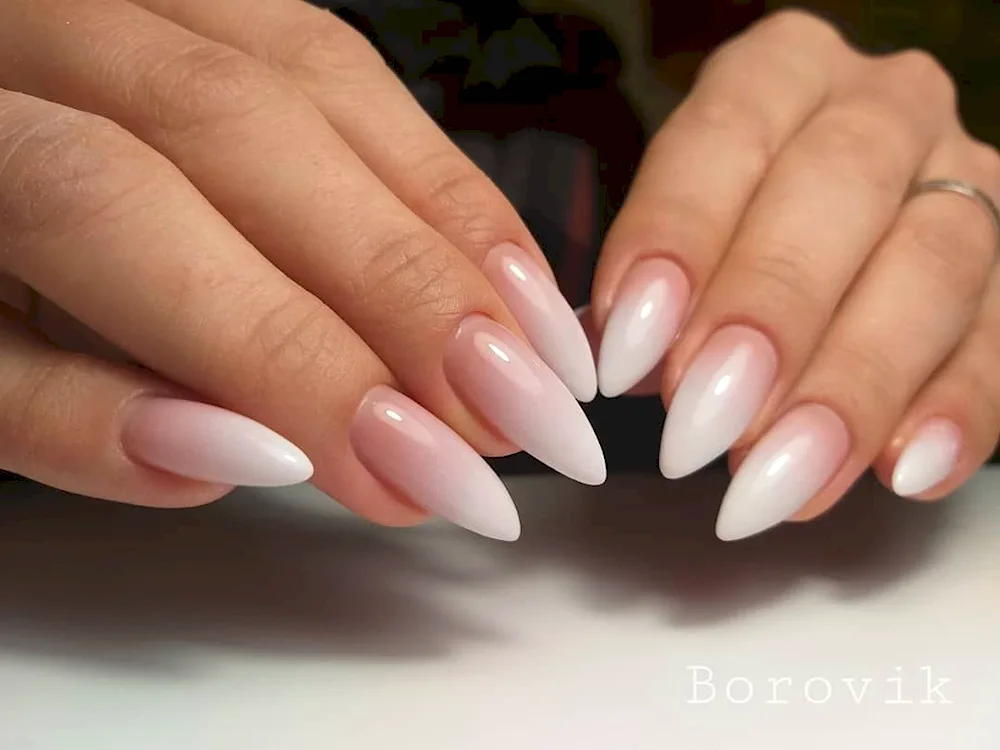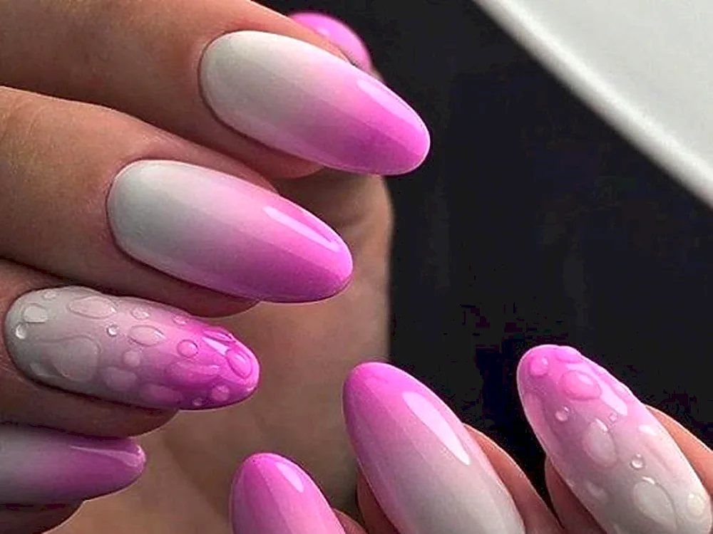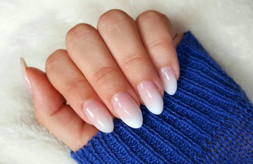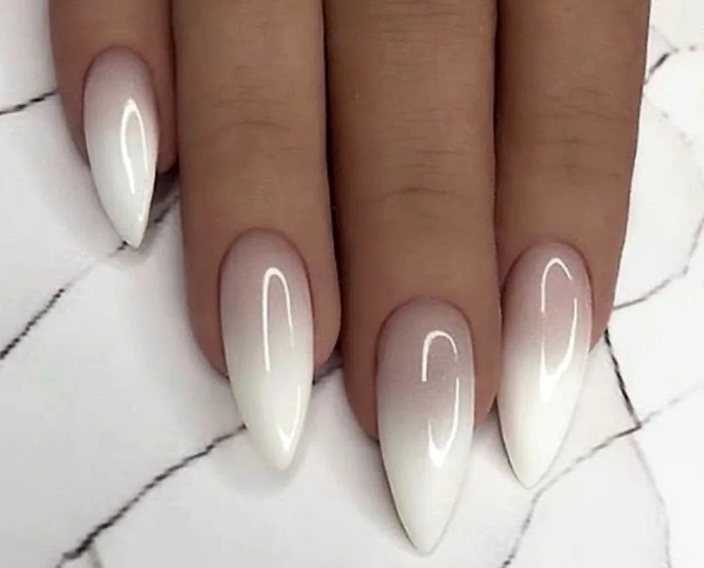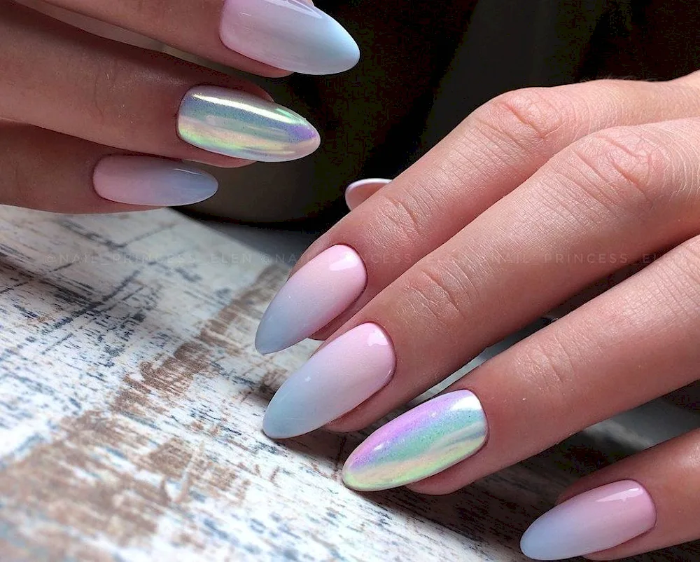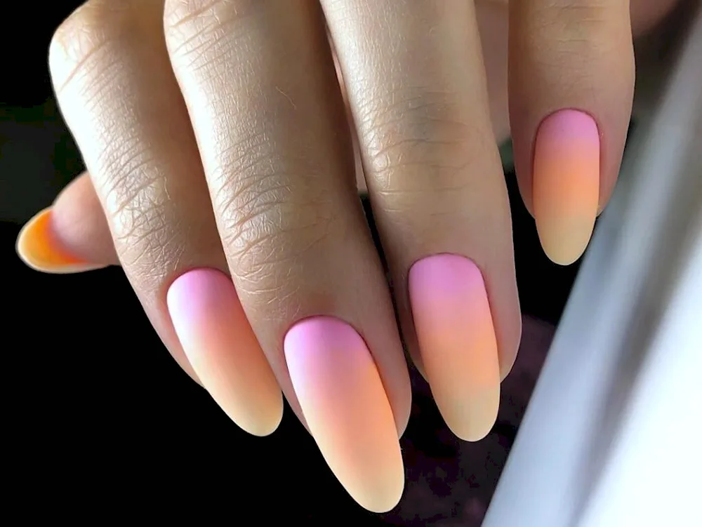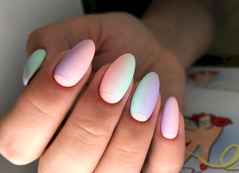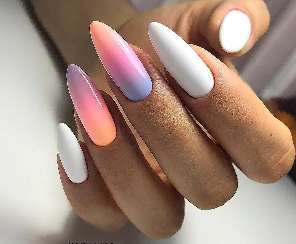 Here are some photos of beautiful almond-shaped nails with a trendy Ombre design. The gradual transition of colors creates a stylish and unique look that you'll love. Check out these stunning nail ideas for your next manicure!