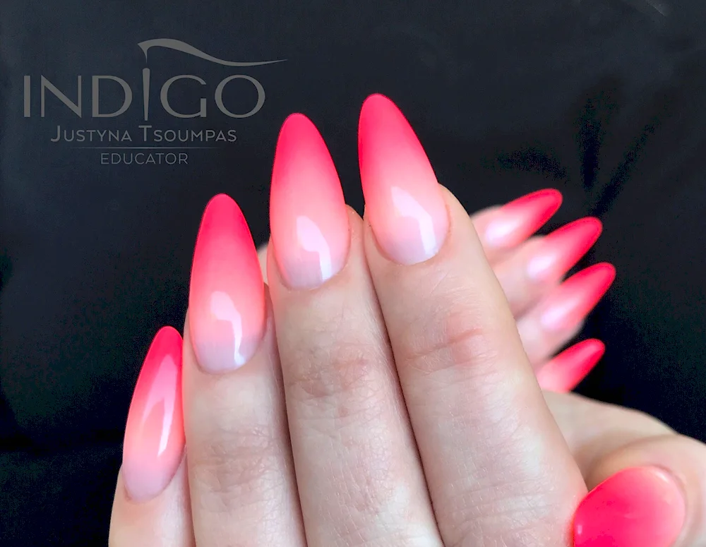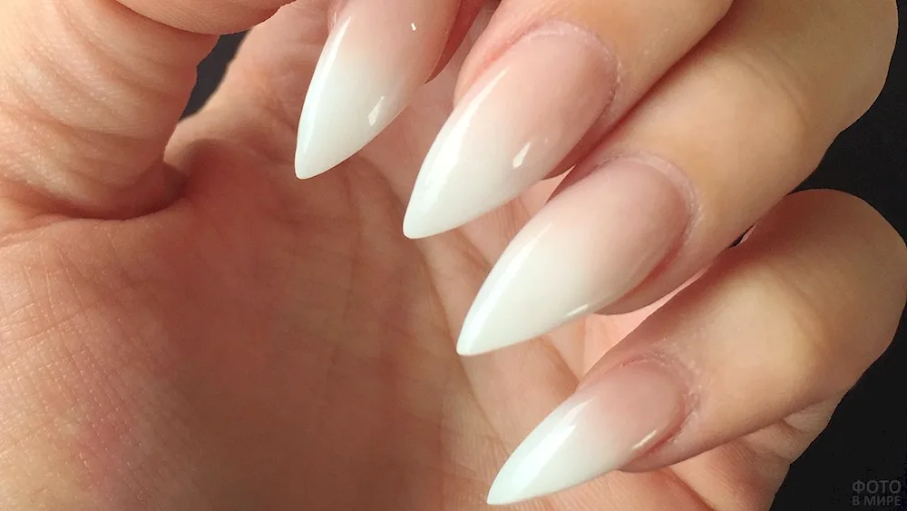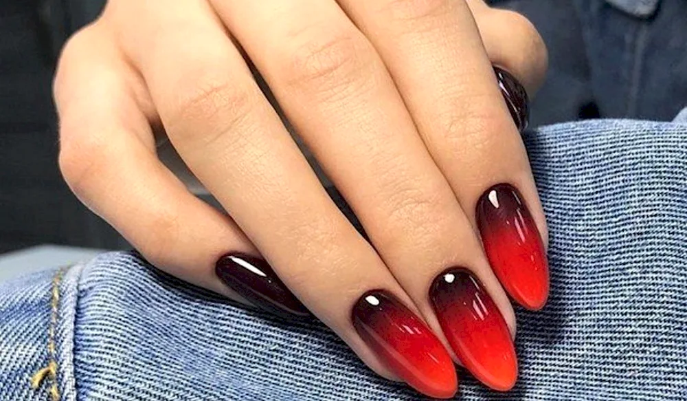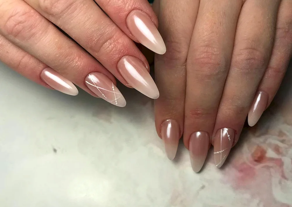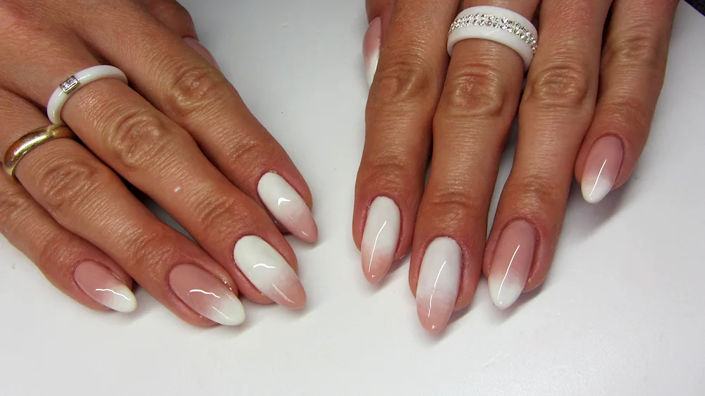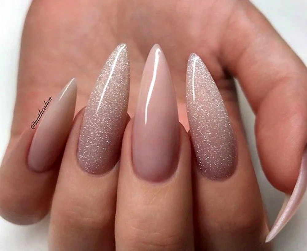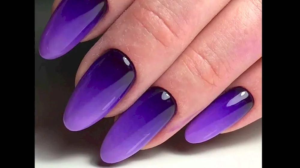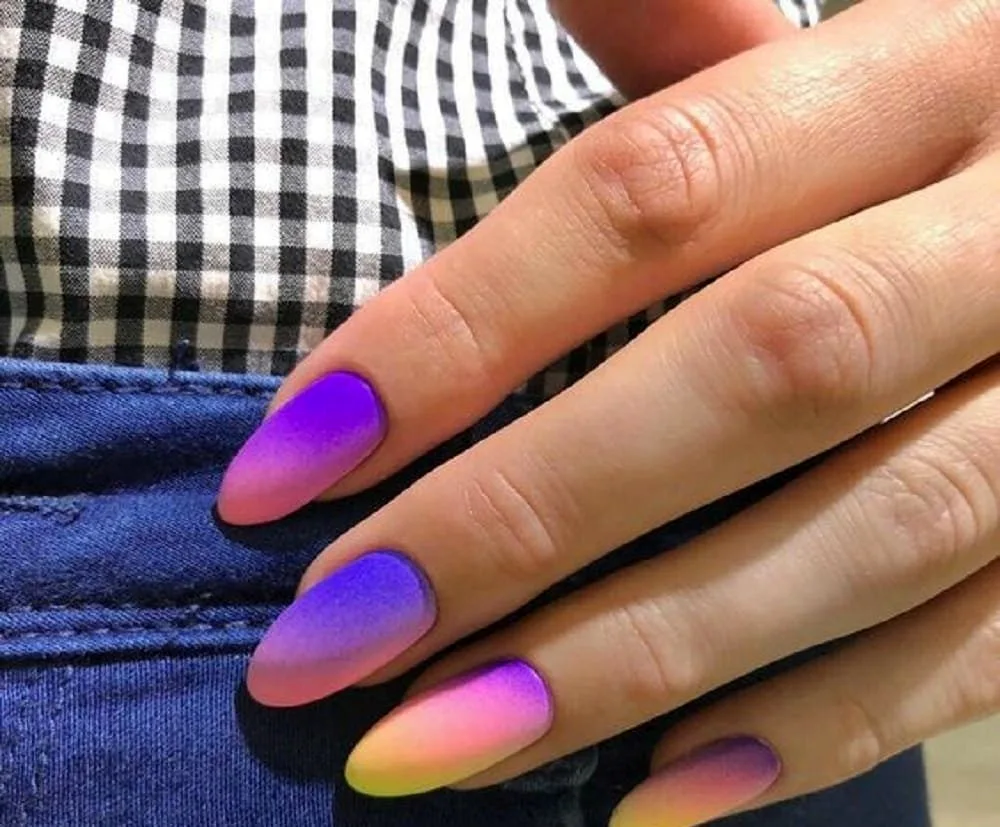 Here are some photos of beautiful almond-shaped nails with a trendy Ombre design. The gradual transition of colors creates a stylish and unique look that you'll love. Check out these stunning nail ideas for your next manicure!