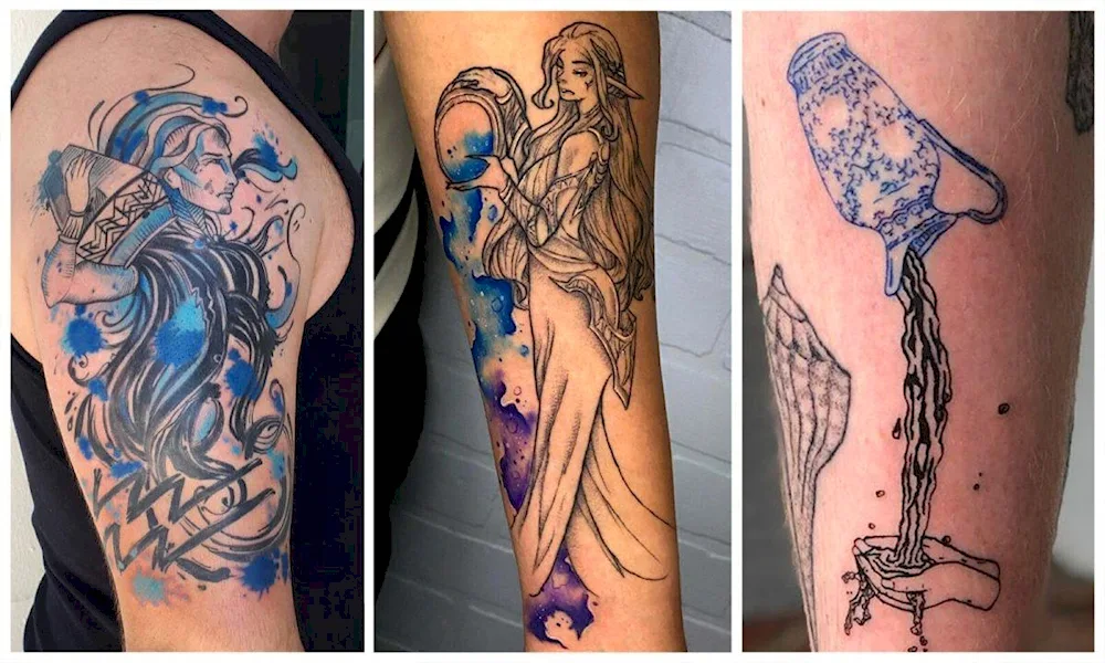 Aquarius Tattoos Check out these stunning photos of Aquarius-inspired tattoos! You'll see various designs featuring water bearer symbols, waves, and intricate patterns that any Aquarius would love. Enjoy browsing through these creative body art ideas!