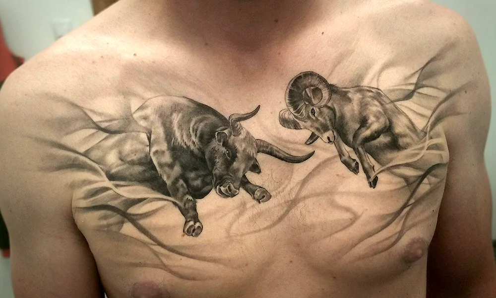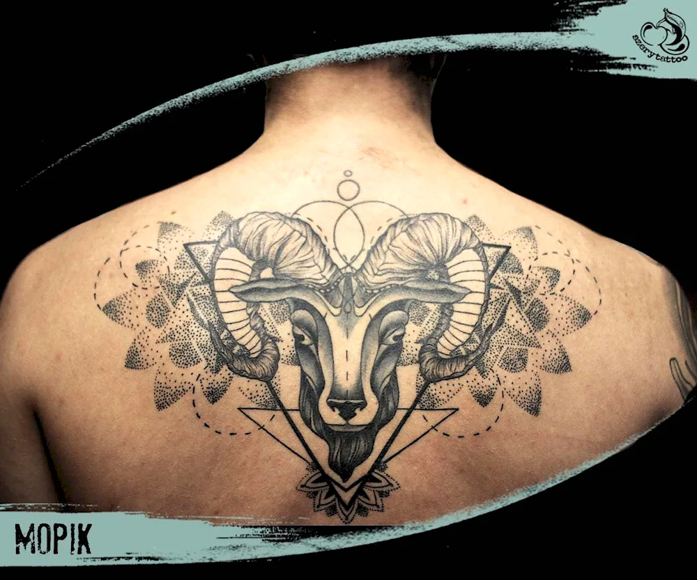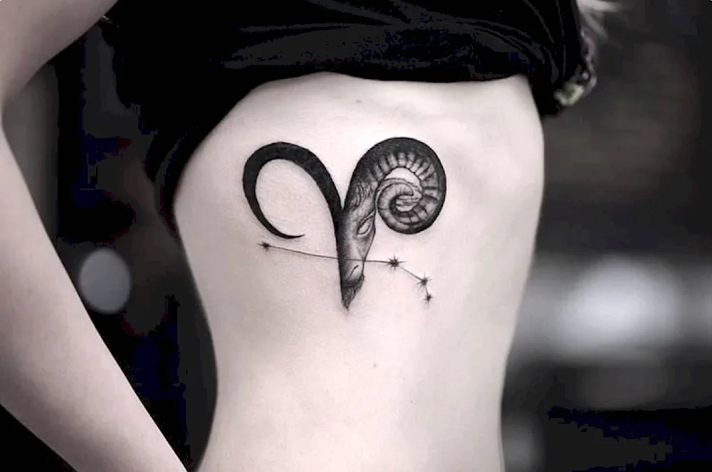 Masculine Aries tattoo designs perfect for men, featuring bold ram symbols and intricate geometric patterns for a powerful and stylish look. These tattoos showcase the pride and strength associated with the Aries zodiac sign, making them a popular choice for men looking to express their astrological identity through body art.
