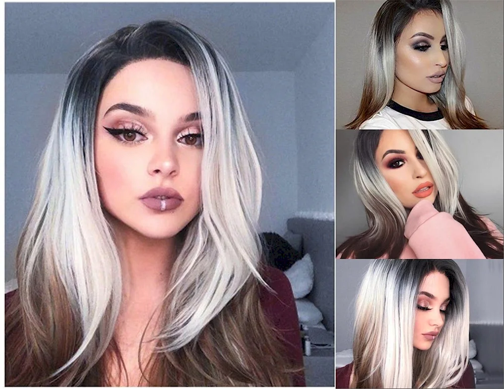 Photos of stunning ash blonde ombre hairstyles showcasing a beautiful blend of dark roots transitioning into light ends, perfect for those looking for a chic and low-maintenance hair color update. These images capture the effortless and natural look of ash blonde ombre, ideal for anyone wanting a subtle yet stylish hair transformation.
