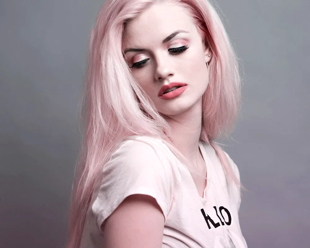 Ash pink blonde Check out these gorgeous images of a soft, ash-toned pink blonde hair color! The photos show off a subtle and trendy look perfect for anyone looking to switch up their hair color.