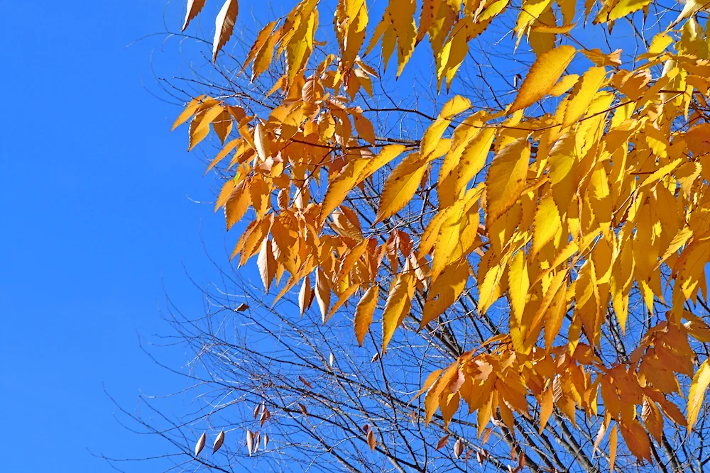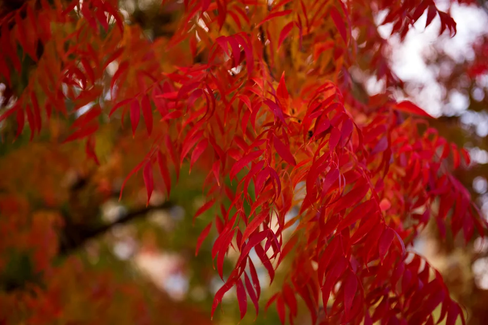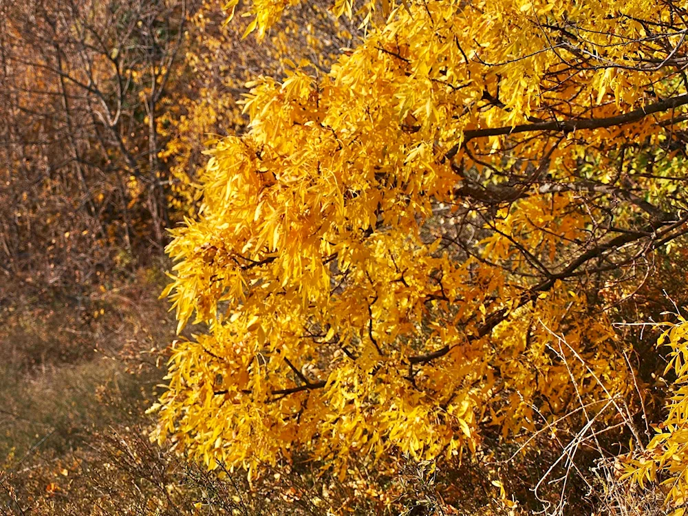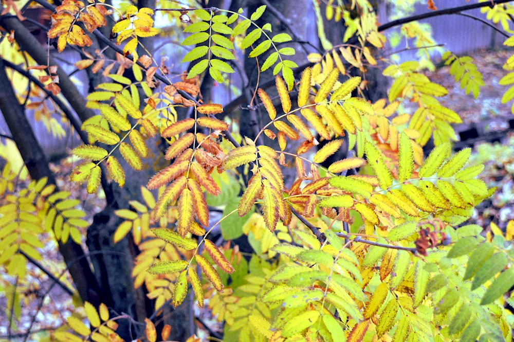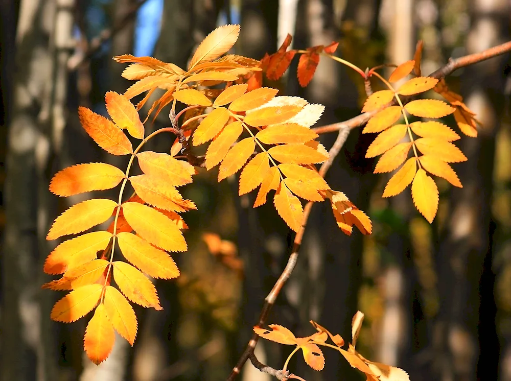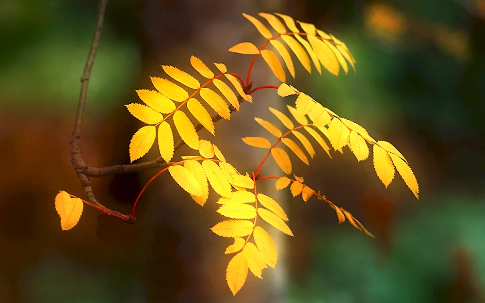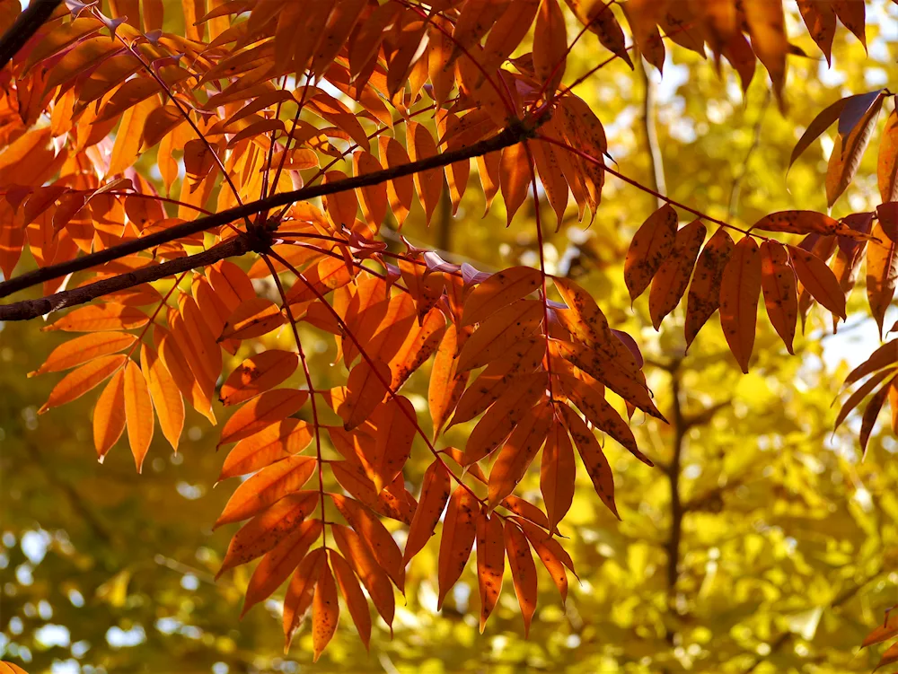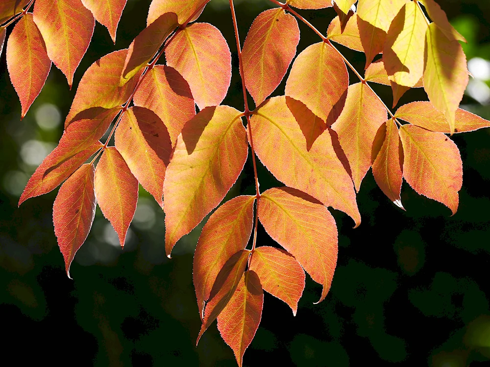 Ash tree leaves in autumn Photos of the vibrant orange and yellow leaves of ash trees in autumn capture the beauty of nature's changing seasons. The images showcase the delicate and intricate details of the foliage as they transition from green to warm autumn hues.
