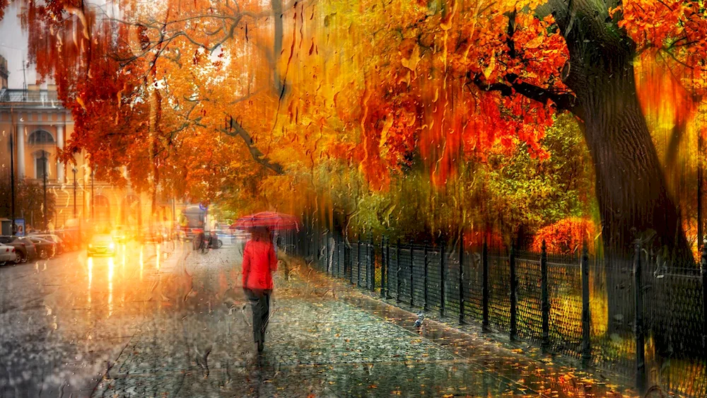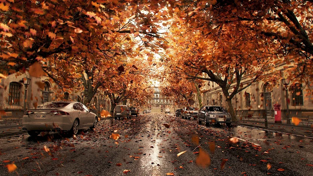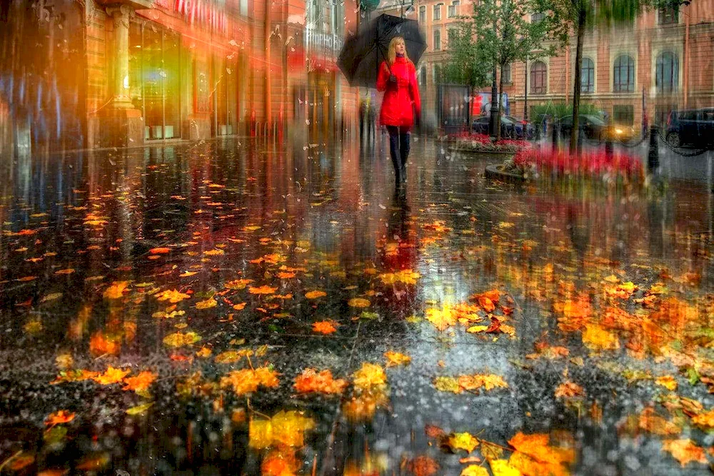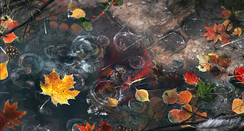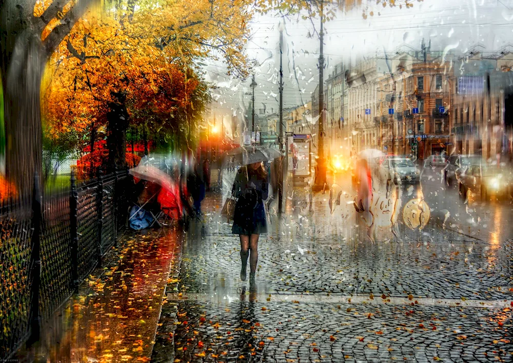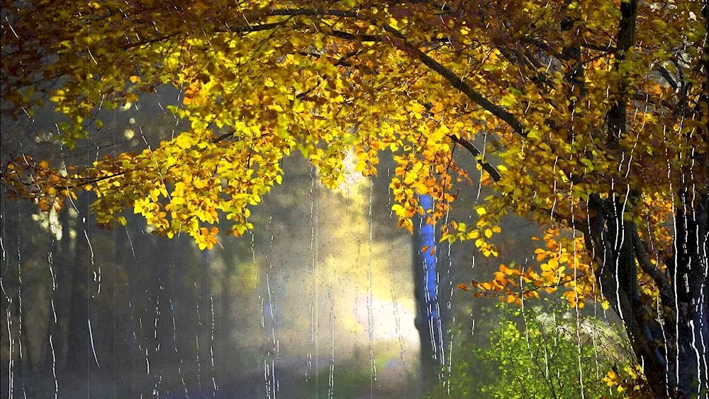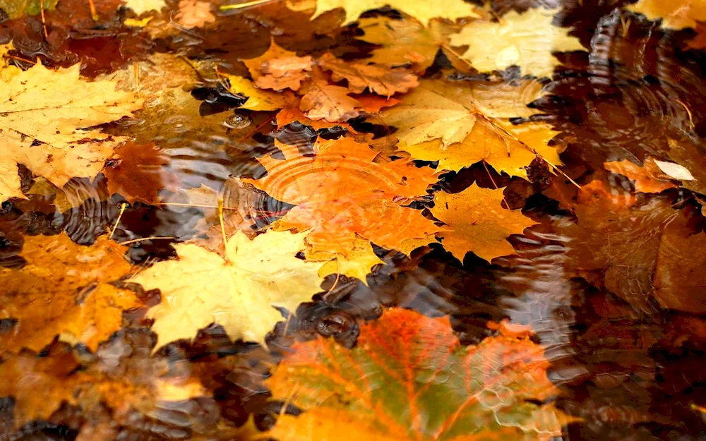Here are some images capturing the beauty of autumn in the rain: vibrant leaves covered in droplets, rain-soaked pumpkins in a field, and a misty forest with fall foliage glistening in the wet weather. I thought you might enjoy these atmospheric shots of the season.