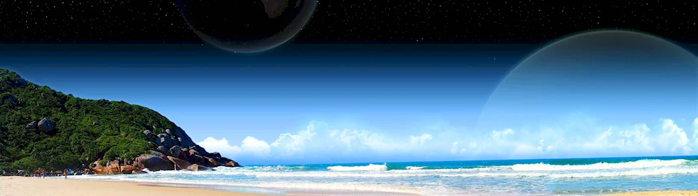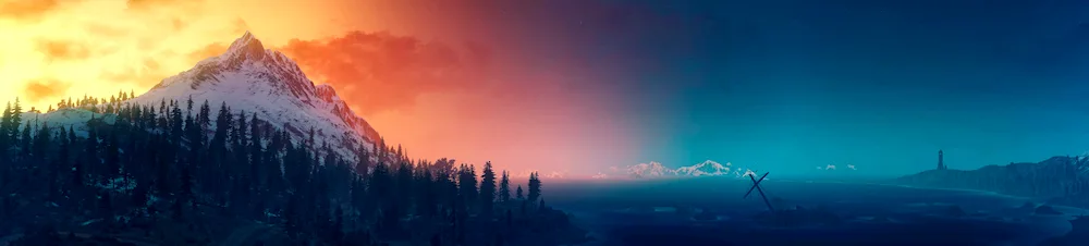 Dual screen backdrop featuring a serene ocean view on one monitor and a lush forest on the other, creating a harmonious and refreshing workspace for your daily tasks. Another option showcases a dynamic city skyline at dusk on one screen, while an expansive mountain range under a starry night sky graces the second monitor, providing a visually captivating background for your dual monitor setup.