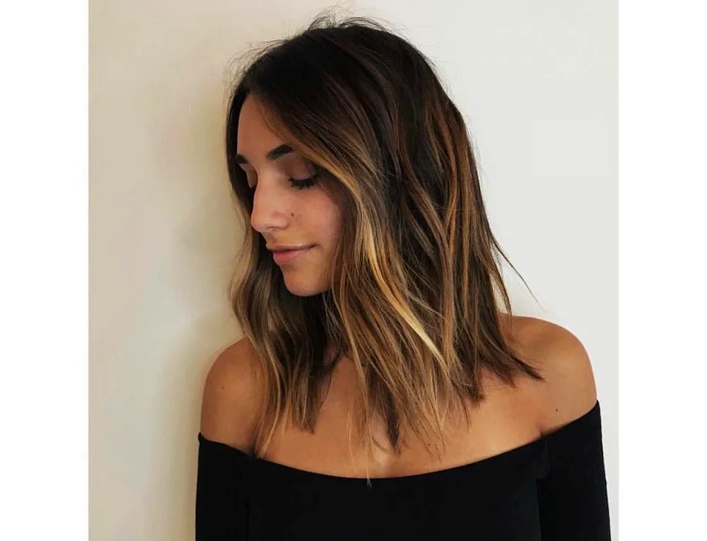 Check out these images of shoulder-length hair with stunning balayage highlights! The natural blend of colors adds depth and dimension to the hair, giving it a sun-kissed effect perfect for the summer.