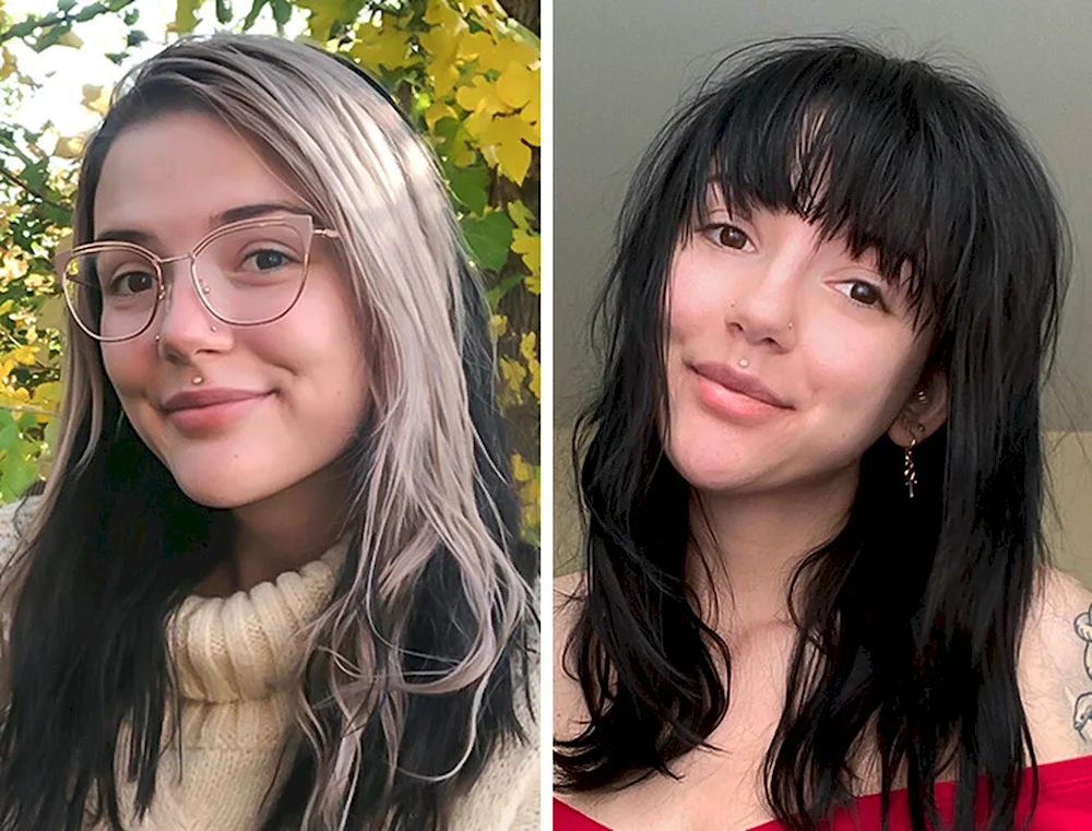 Girls with fringes before and after