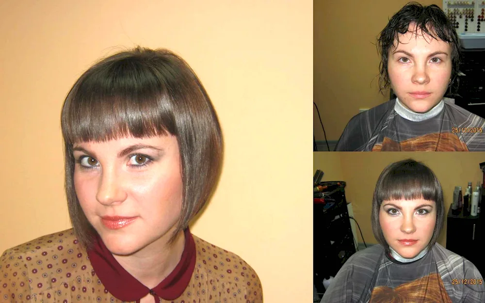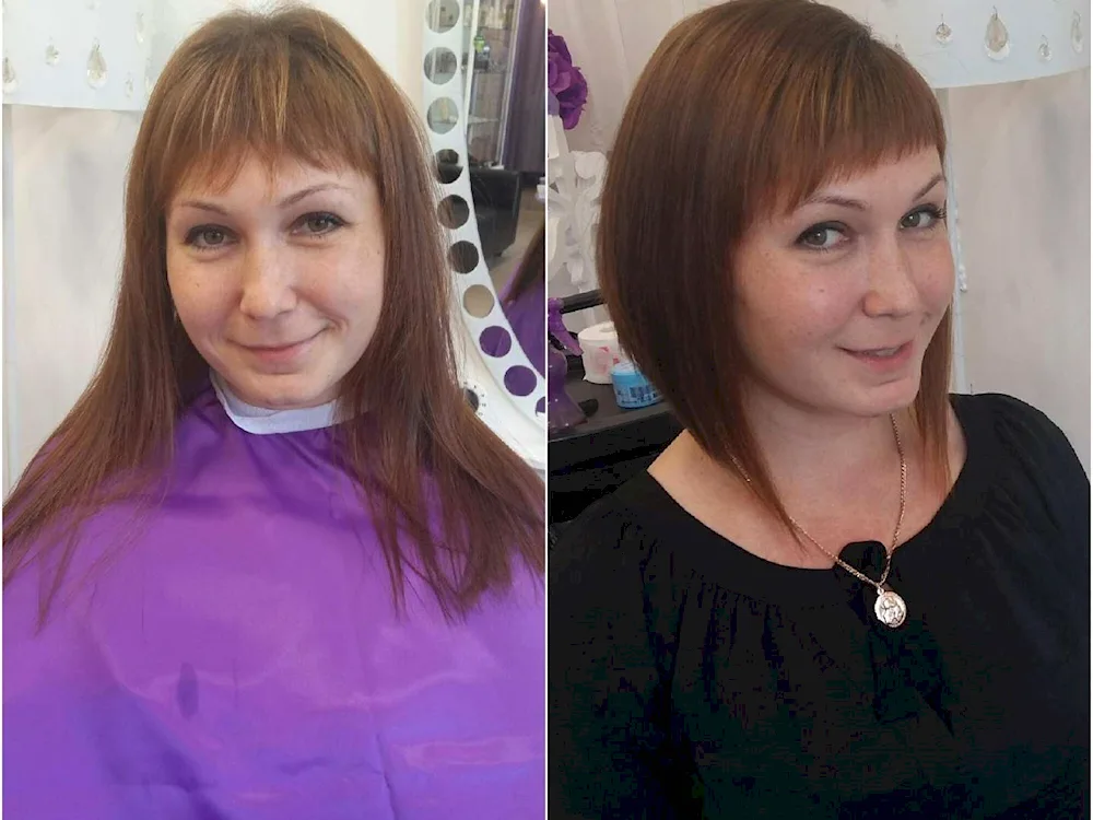 Keratin straightening with fringes before and after