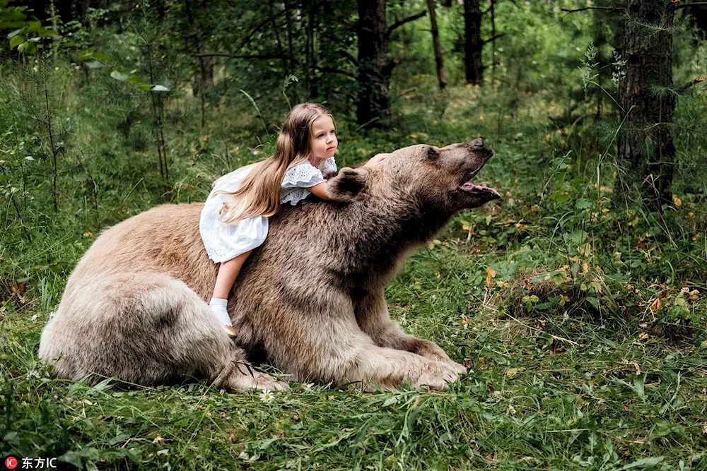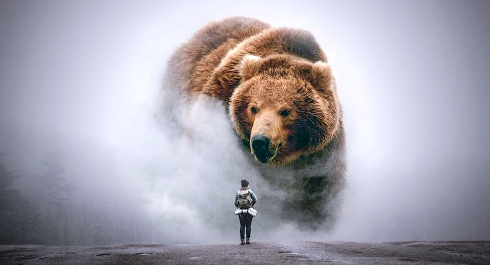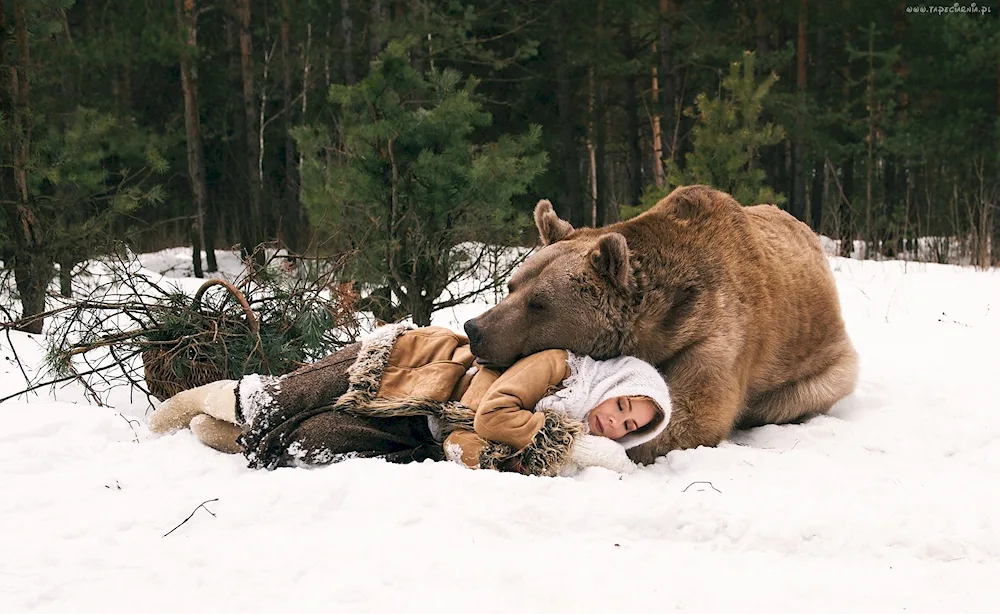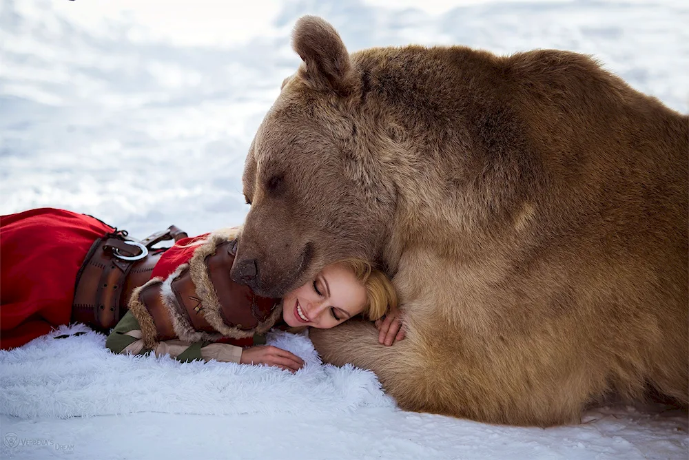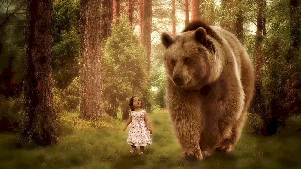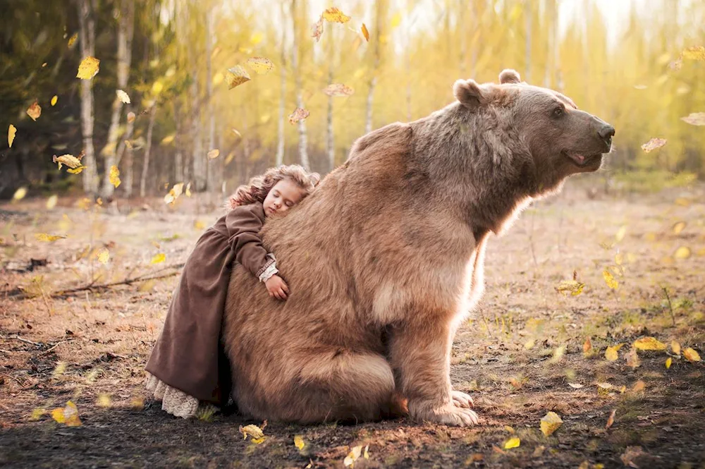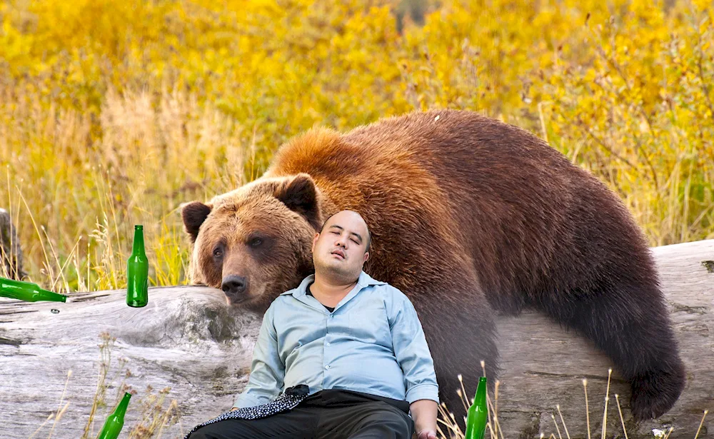 Photos of a bear interacting with a man in the wilderness, showing moments of curiosity, playfulness, and mutual respect between the two creatures. The images capture the special bond that can form between humans and wild animals when approached with caution and understanding.