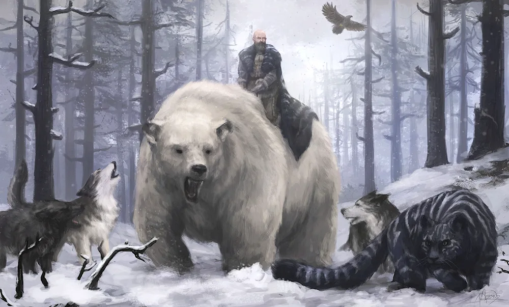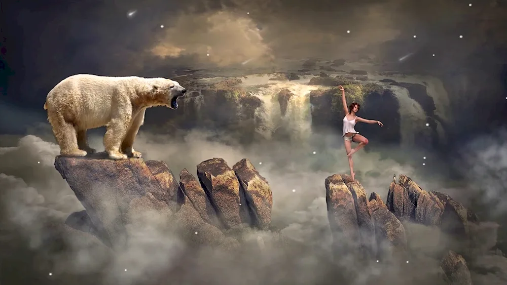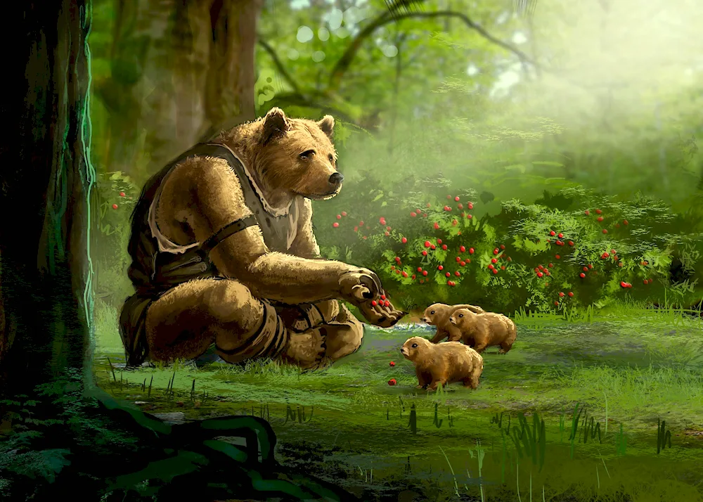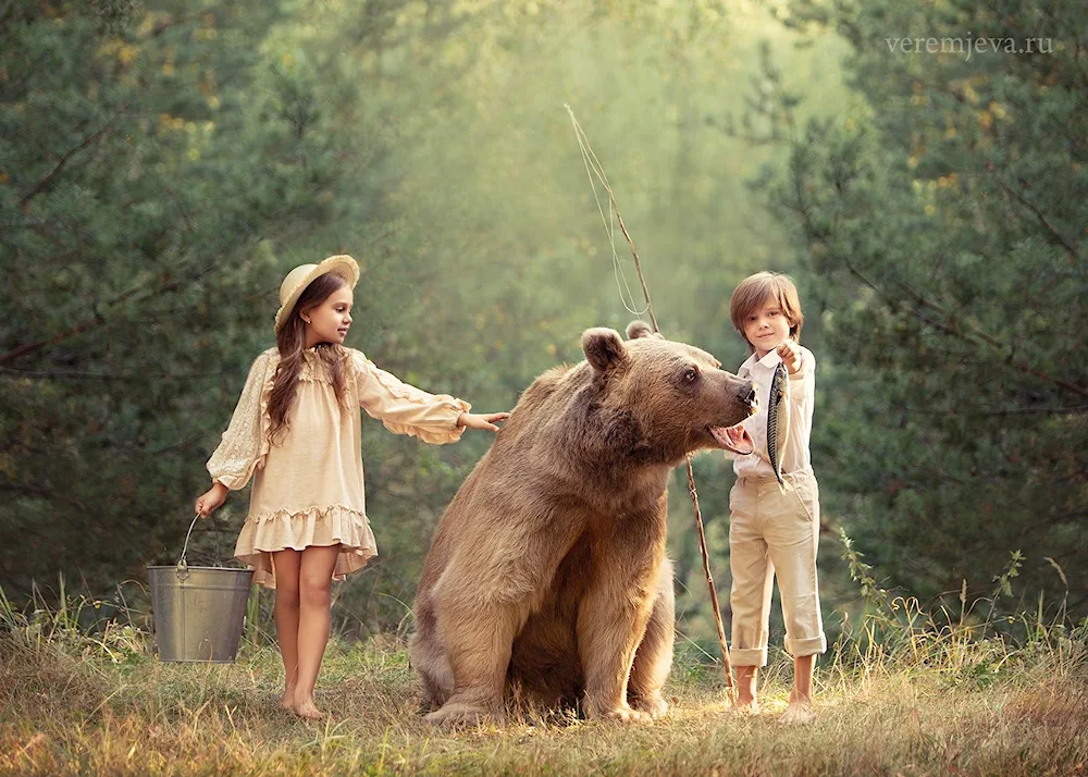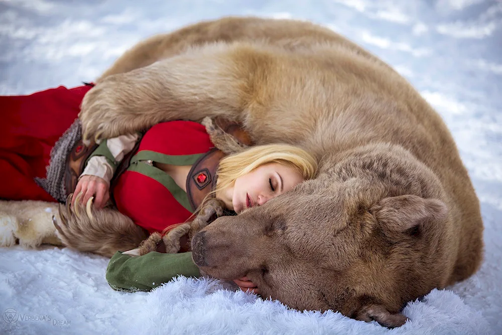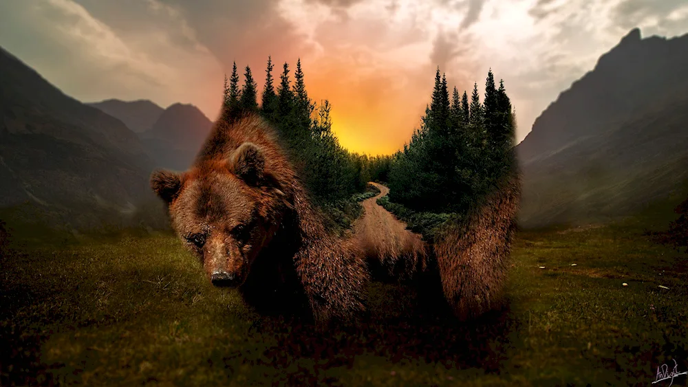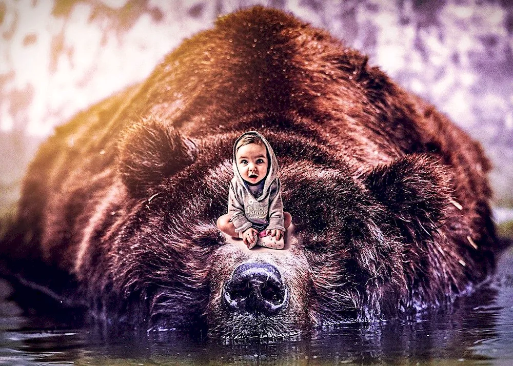 Photos of a bear interacting with a man in the wilderness, showing moments of curiosity, playfulness, and mutual respect between the two creatures. The images capture the special bond that can form between humans and wild animals when approached with caution and understanding.