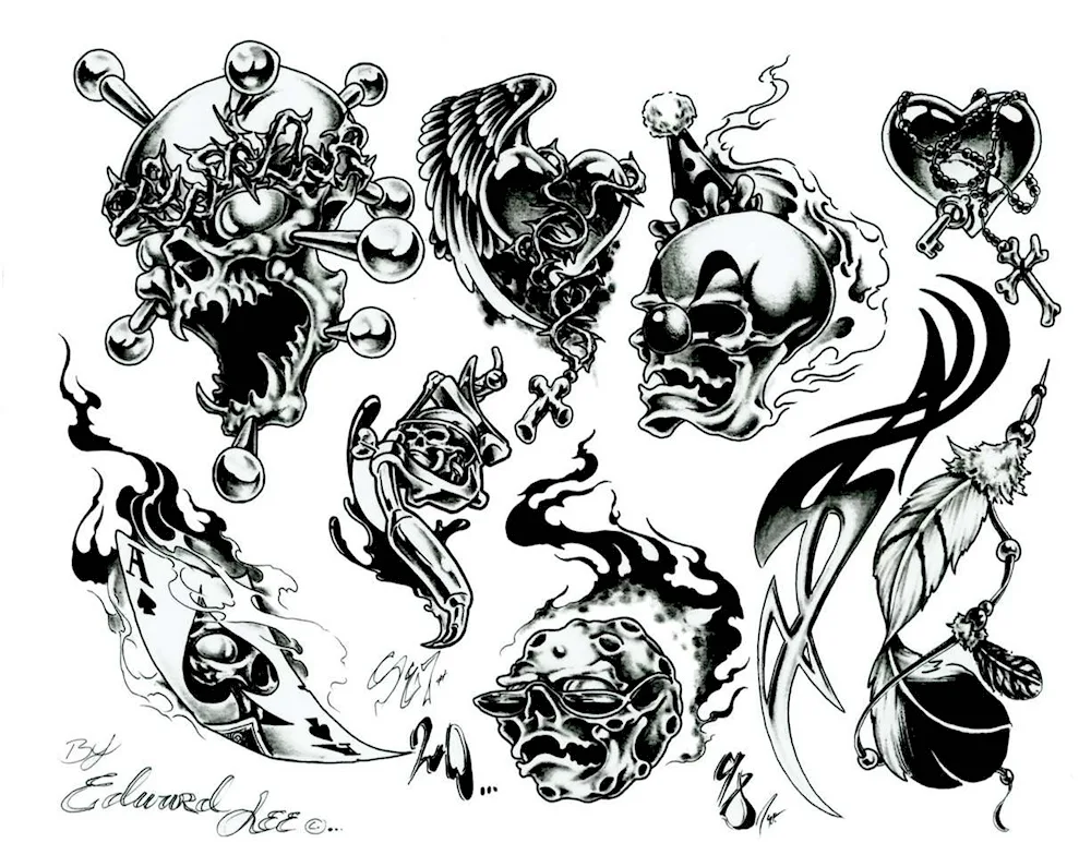 Black and white male sketches of tattoos on the arm Collection of black and white sketches featuring intricate male tattoo designs specifically for the arm. These images showcase a variety of styles and details perfect for inspiration or customization.