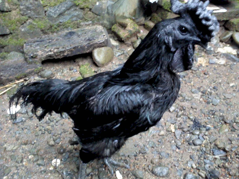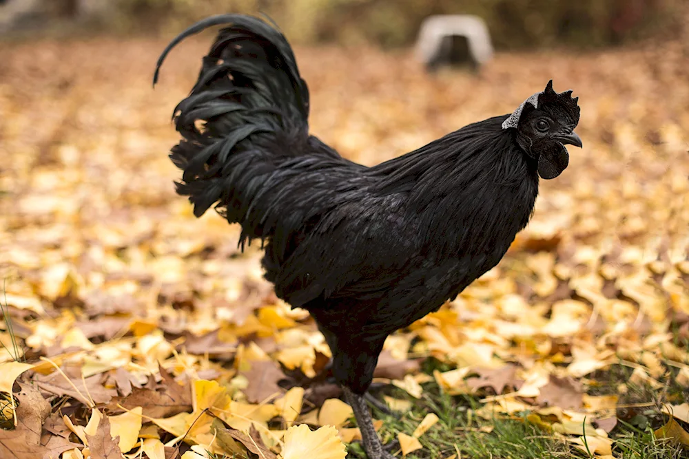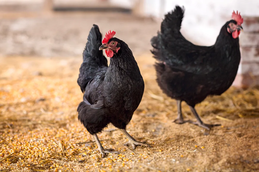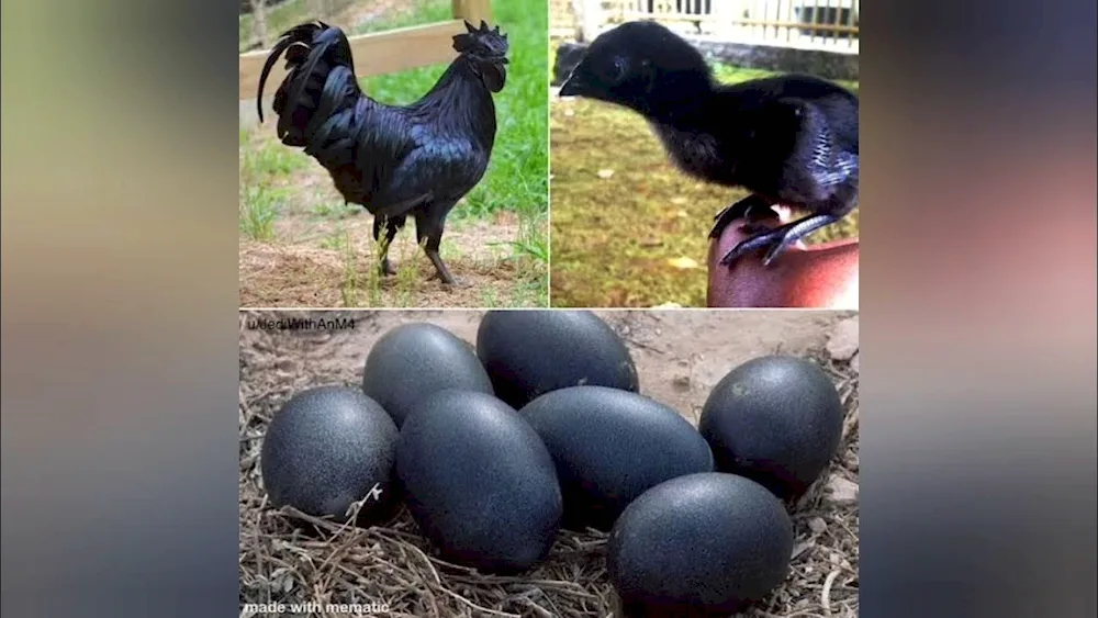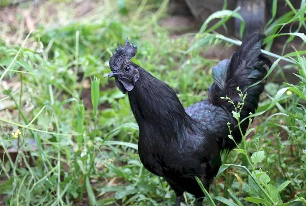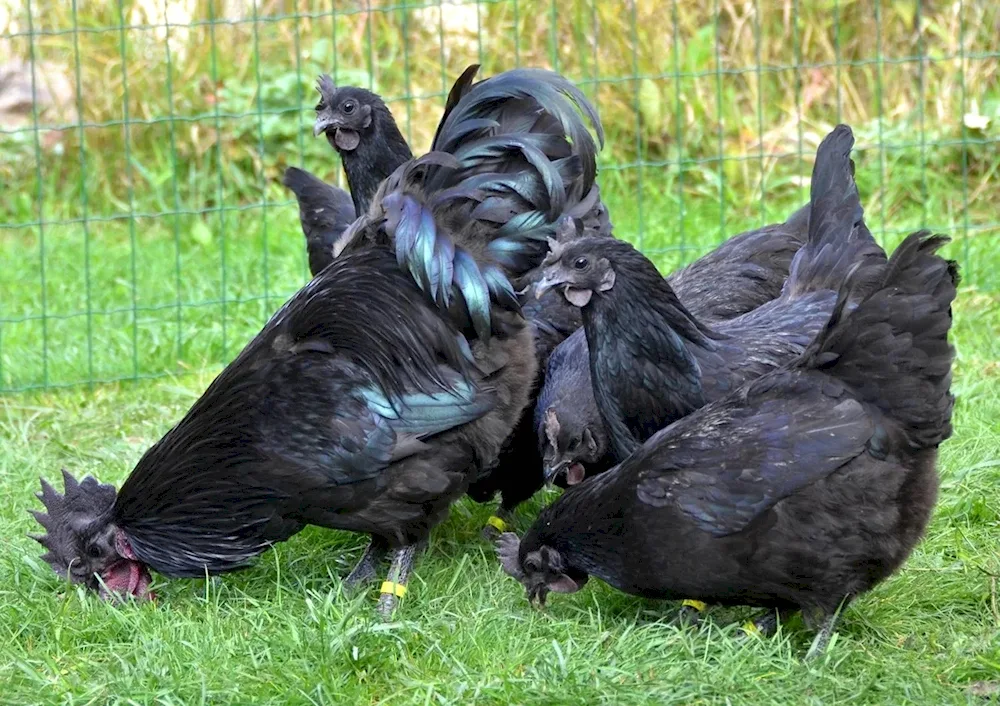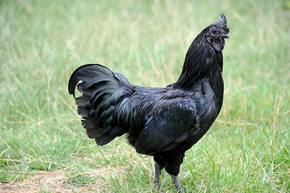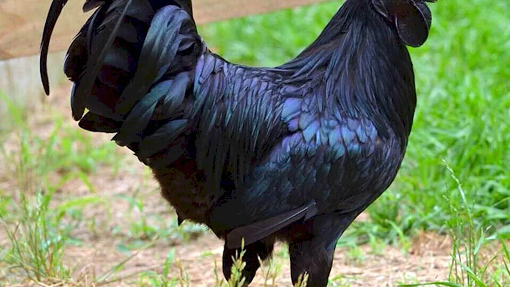 Black chickens Check out these stunning photos of ebony-colored chickens strutting around in the farmyard! The contrast of their dark feathers against the vibrant green grass is absolutely captivating.