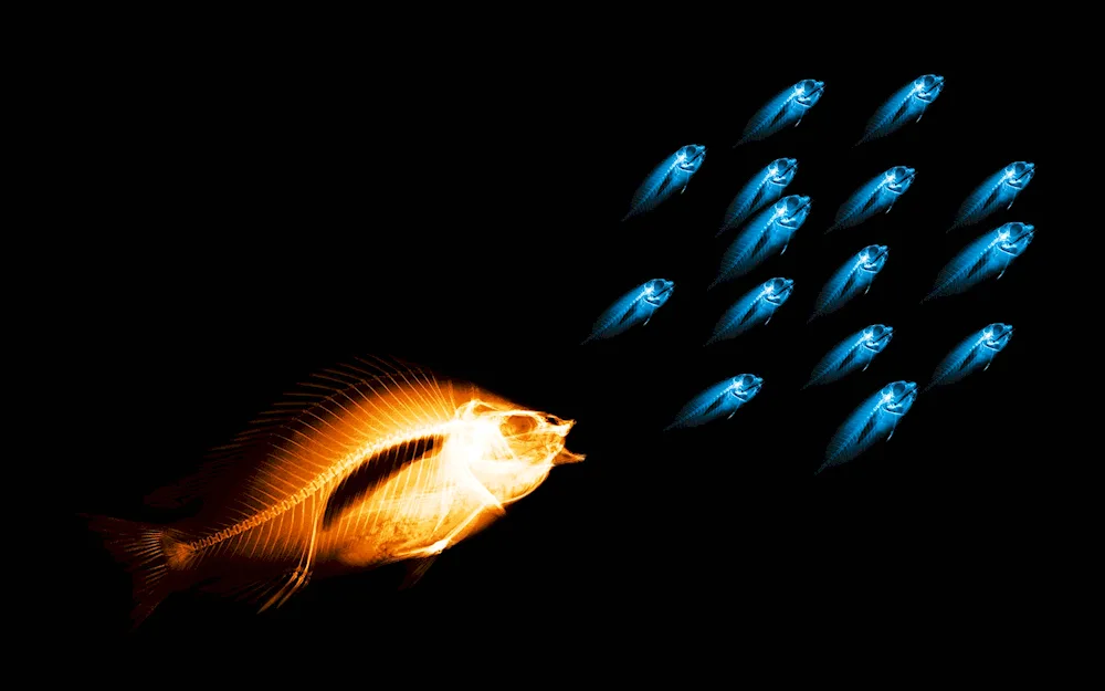 Black fish Here are some images of dark-colored fish swimming gracefully in the deep ocean depths. The contrast of their black scales against the vibrant coral reefs creates a stunning visual display.