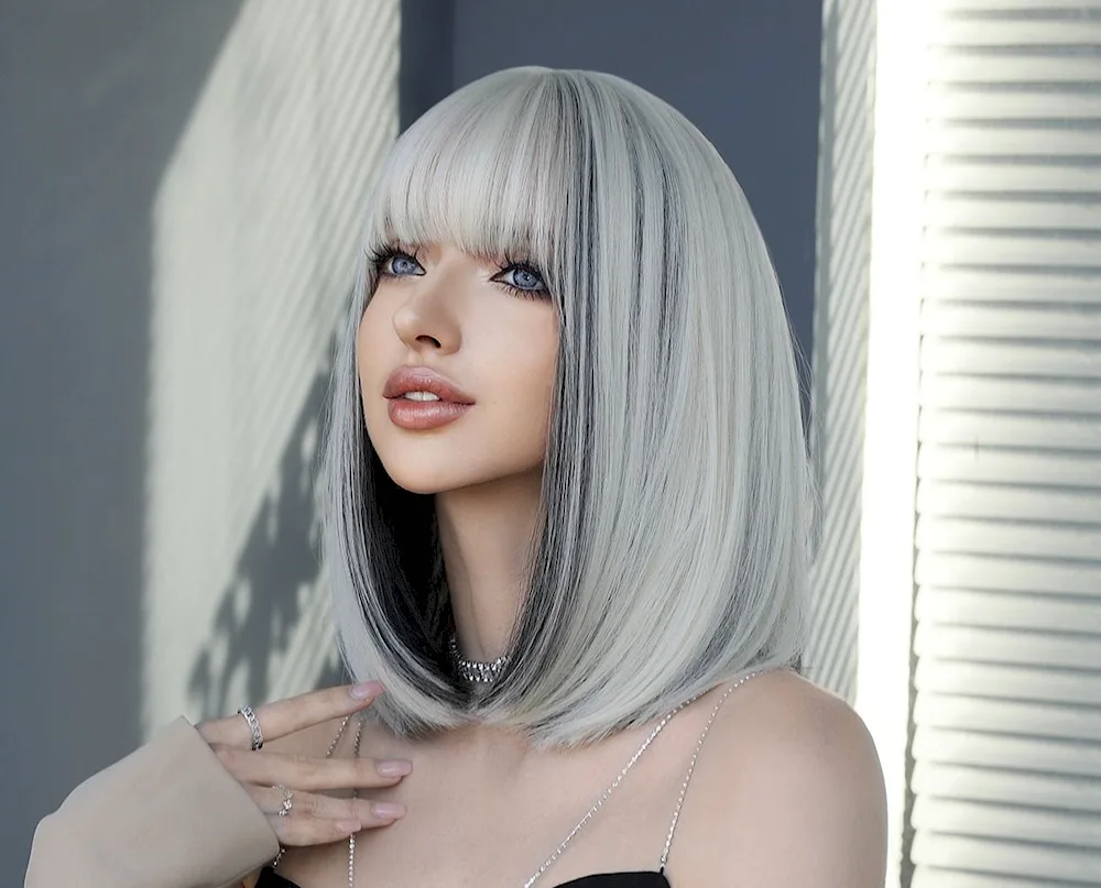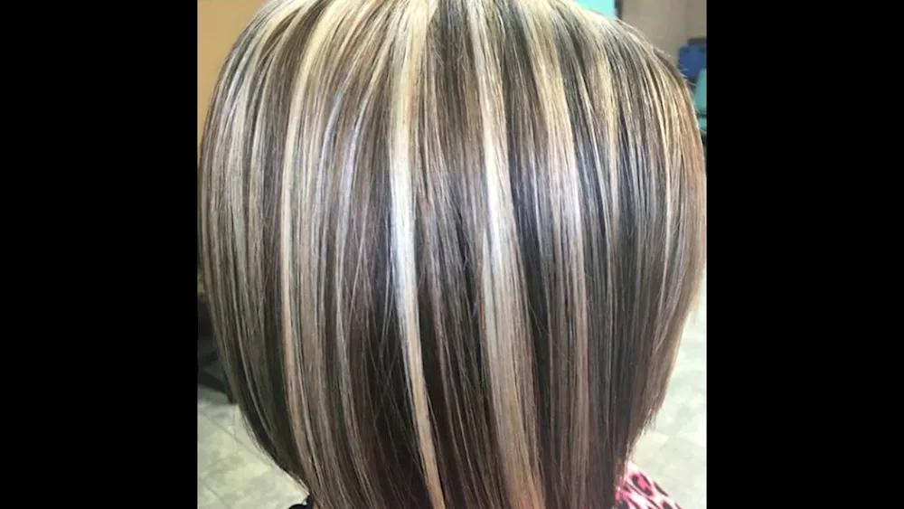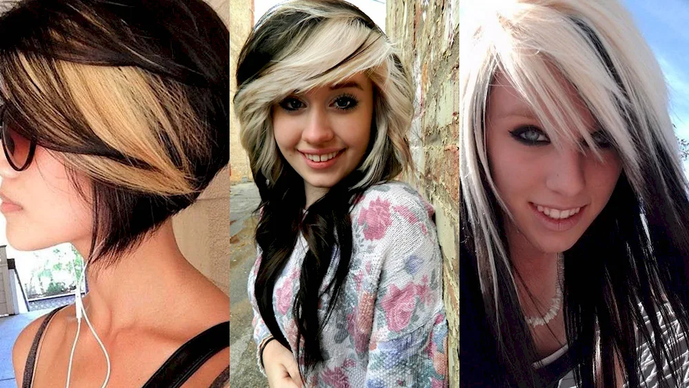 Photos of stunning black streaks contrasting with white hair, creating a bold and edgy look that will turn heads. These images showcase the beauty and uniqueness of black highlights on white hair, perfect for anyone looking to make a statement with their hair color.