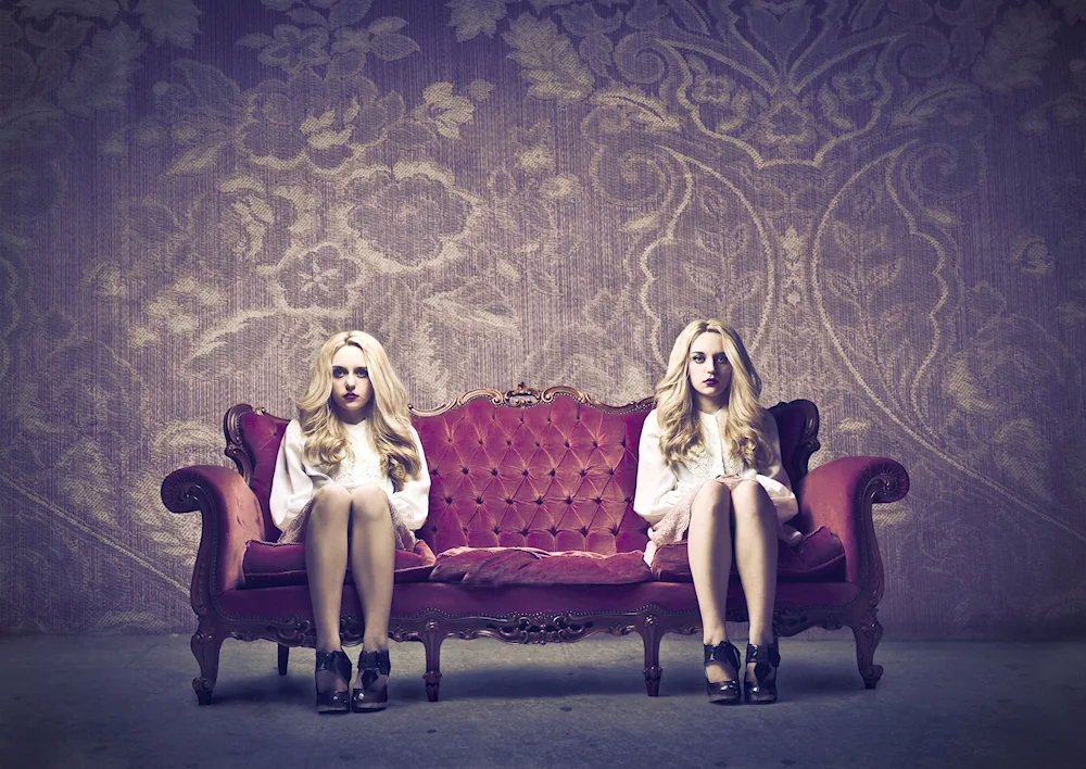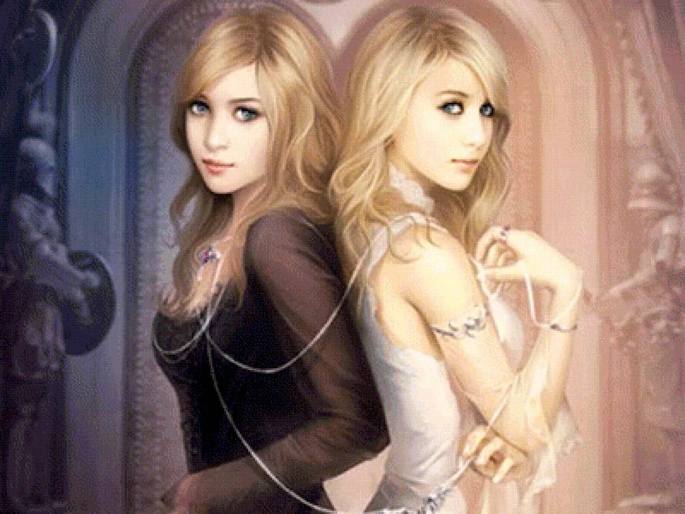 Pullover coffeeOlsen sistersDiana ReteganOlsen sistersTatiana and Olga ArntholtzOlsen sistersOlsen twinsBlonde and brunetteGirl in the mirrorPortrait of two girls