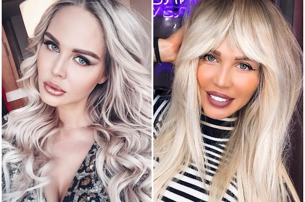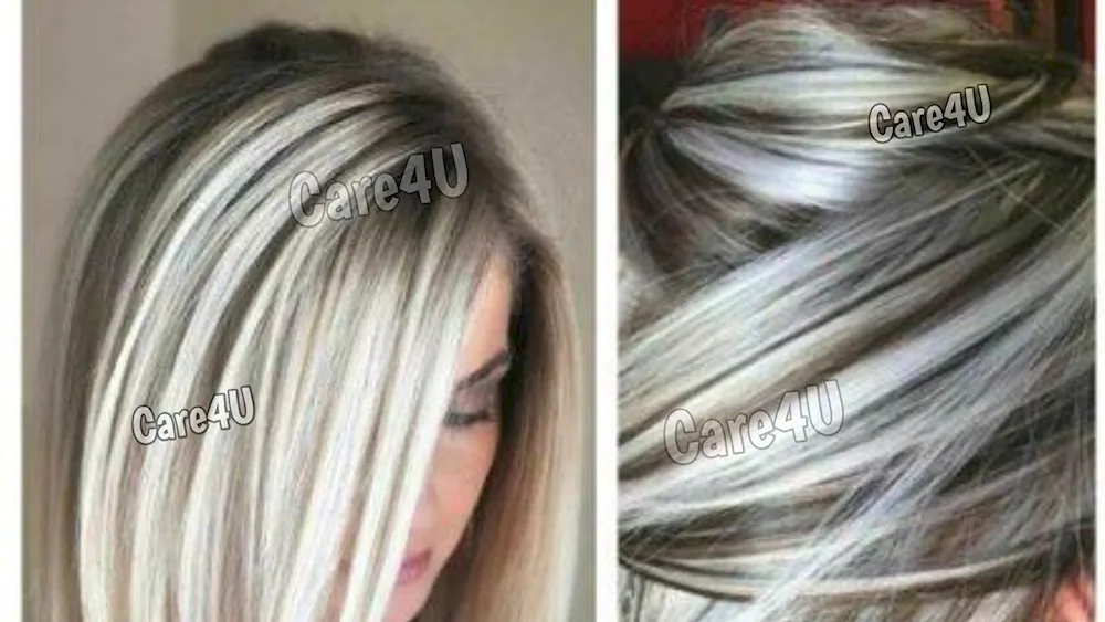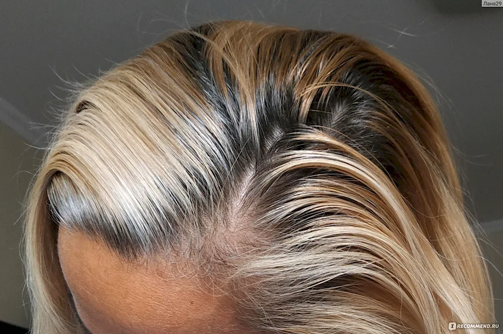 Photos of women with blonde hair and dark roots peeking through, showcasing a trendy and edgy hairstyle. Images capture the contrast between the light color and dark roots, adding depth and dimension to the overall look.
