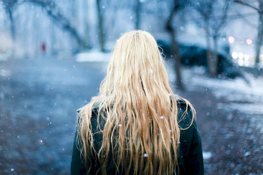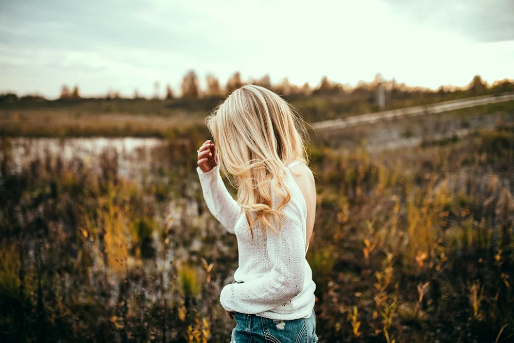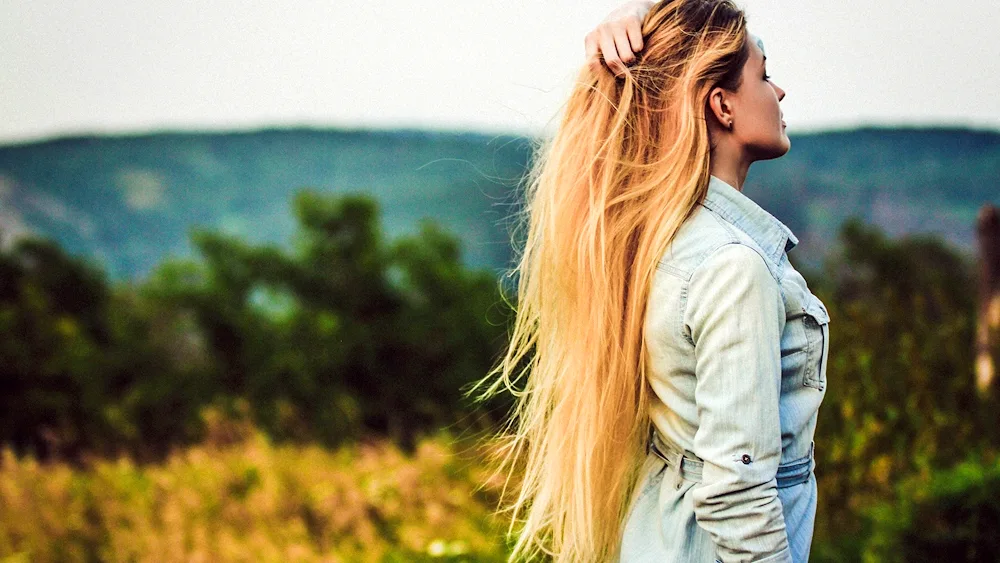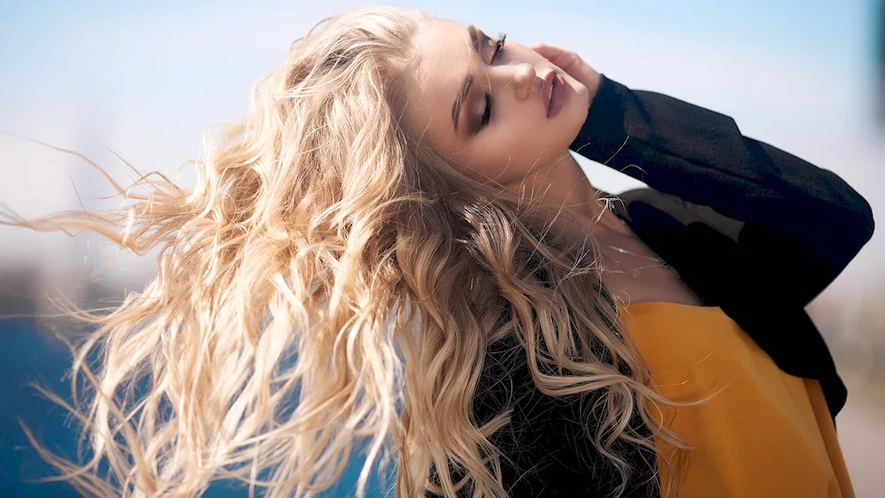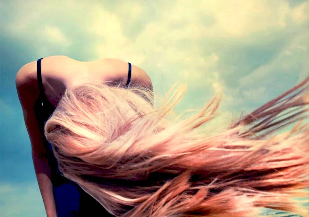 Blonde with long hair and no face Images of a beautiful woman with long blonde hair covering her face, creating an air of mystery and allure. The focus is on the flowing locks and shadows, drawing attention to the overall aesthetic rather than facial features.