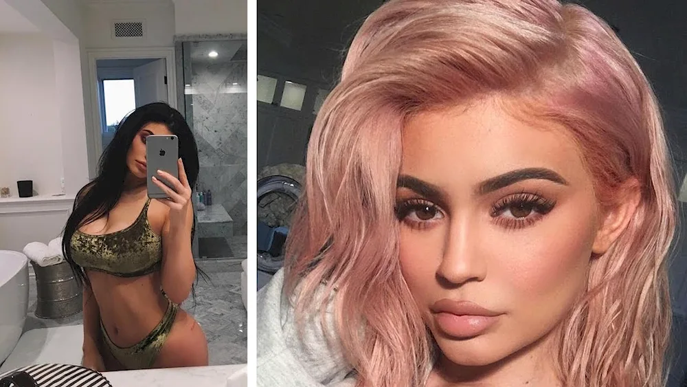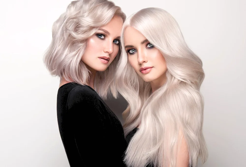 Blonde with pink tint Photos of a woman with blonde hair featuring a subtle pink tint. The images showcase different hairstyles and shades of pink for a fun and trendy look.