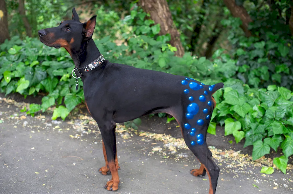 Blue Doberman Check out these stunning images of a beautiful Blue Doberman, showcasing their striking blue coat and elegant physique. You'll be mesmerized by their unique coloration and graceful presence in these photos.