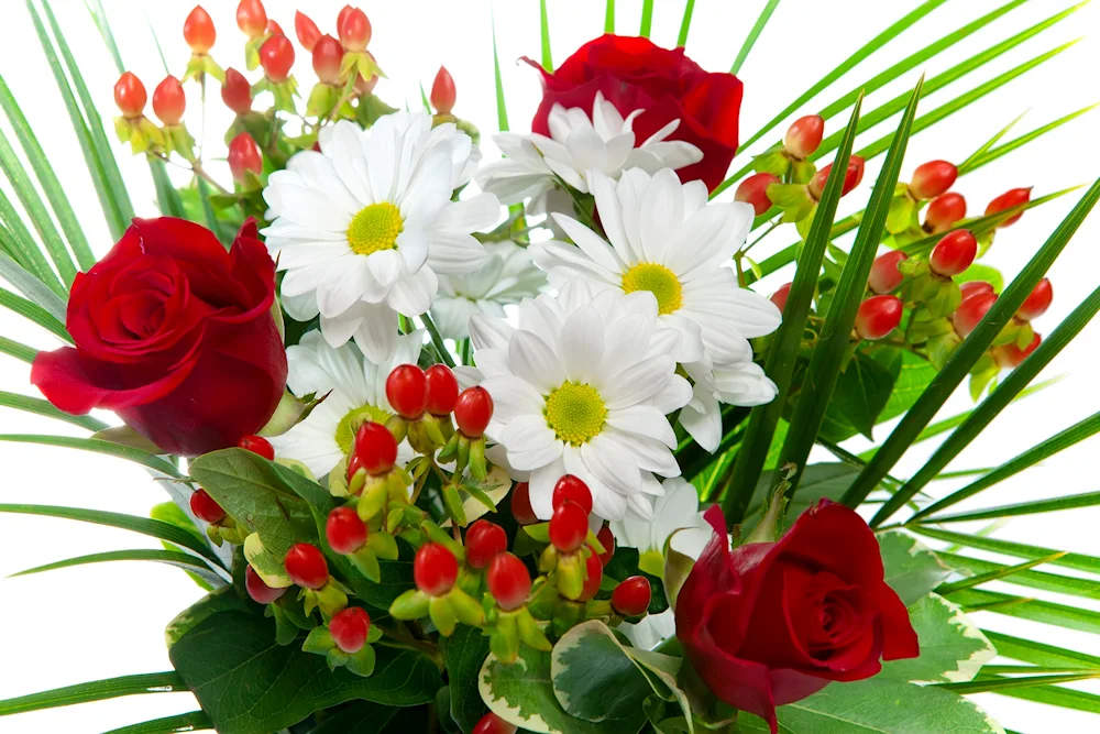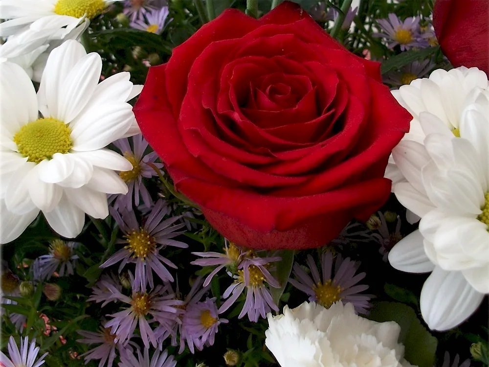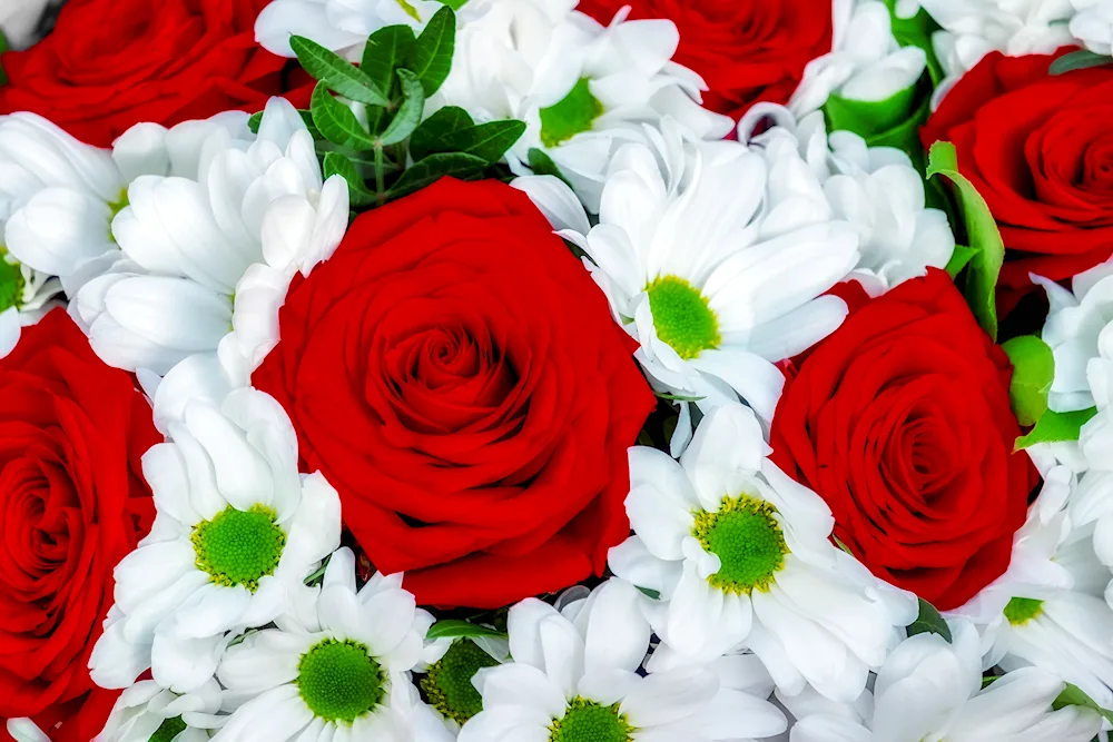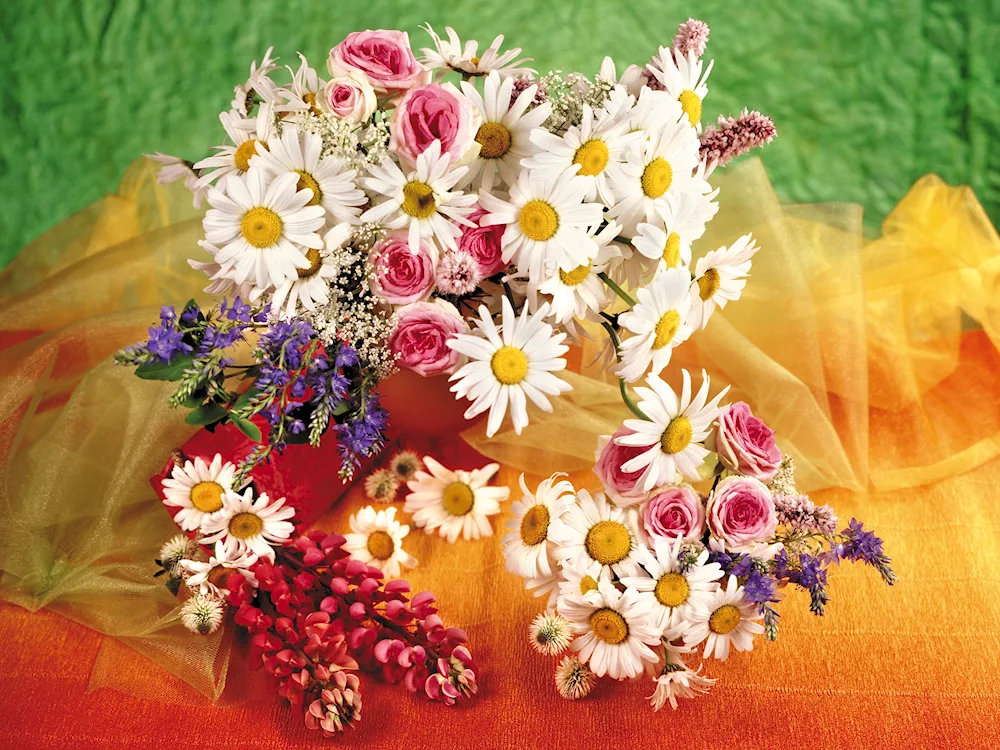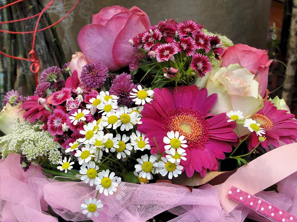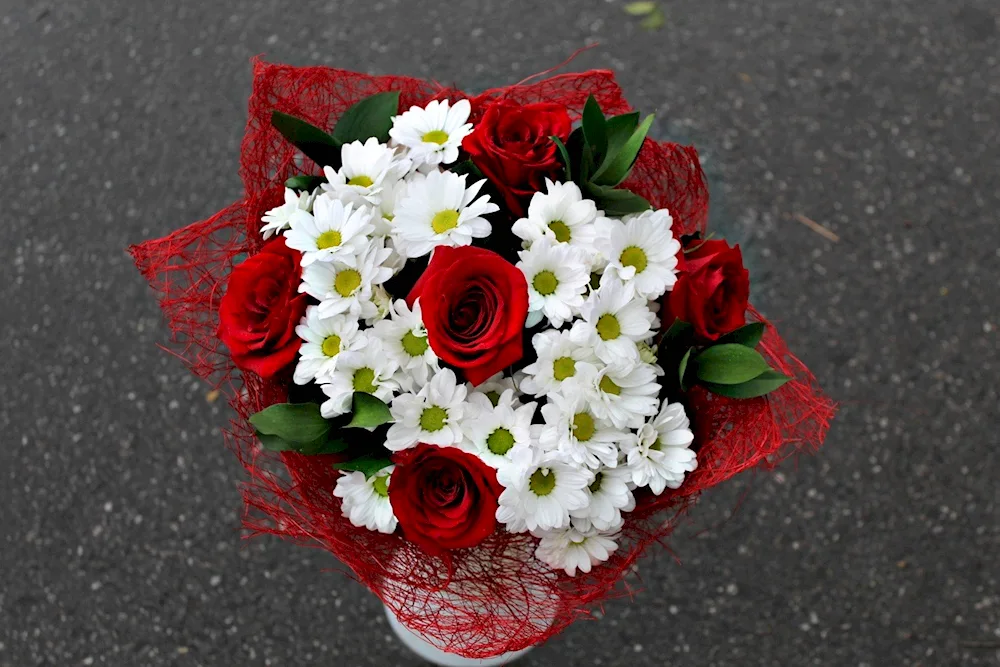 Bouquet of daisies and roses Collection of images showcasing a beautiful arrangement of daisies and roses, perfect for brightening up any room in your home. Each photo captures the vibrant colors and delicate petals of these classic flowers, making it impossible not to smile when looking at them.