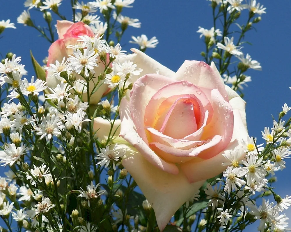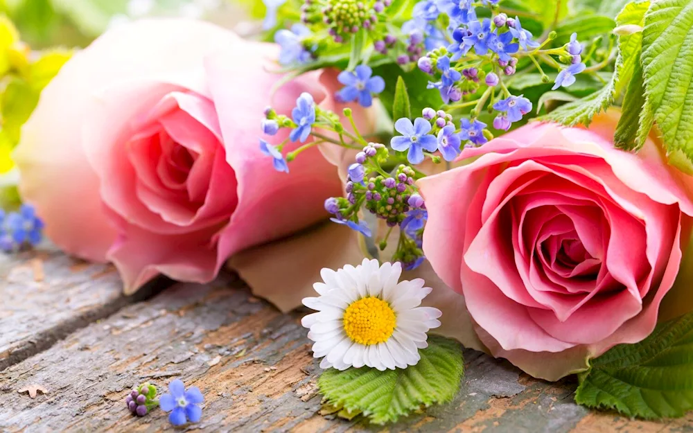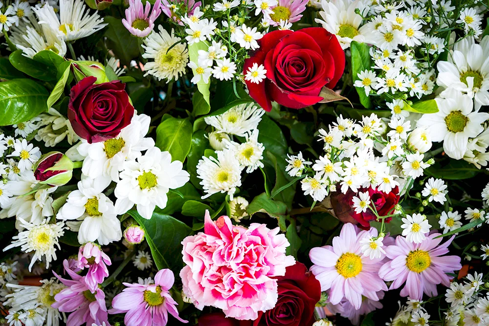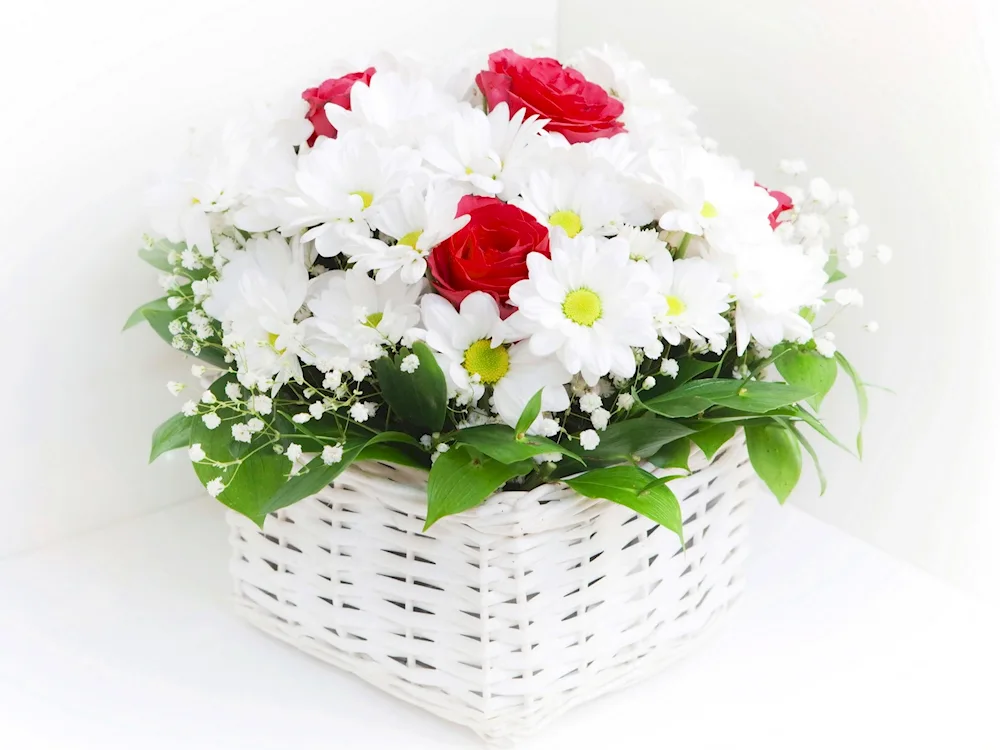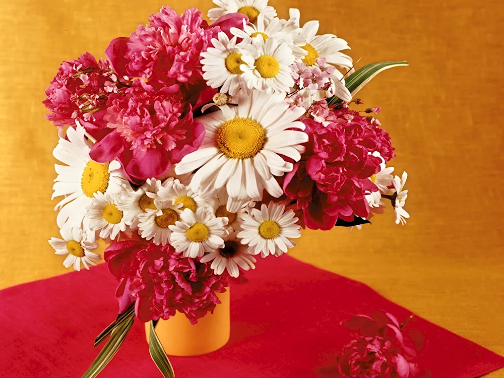 Bouquet of daisies and roses Collection of images showcasing a beautiful arrangement of daisies and roses, perfect for brightening up any room in your home. Each photo captures the vibrant colors and delicate petals of these classic flowers, making it impossible not to smile when looking at them.