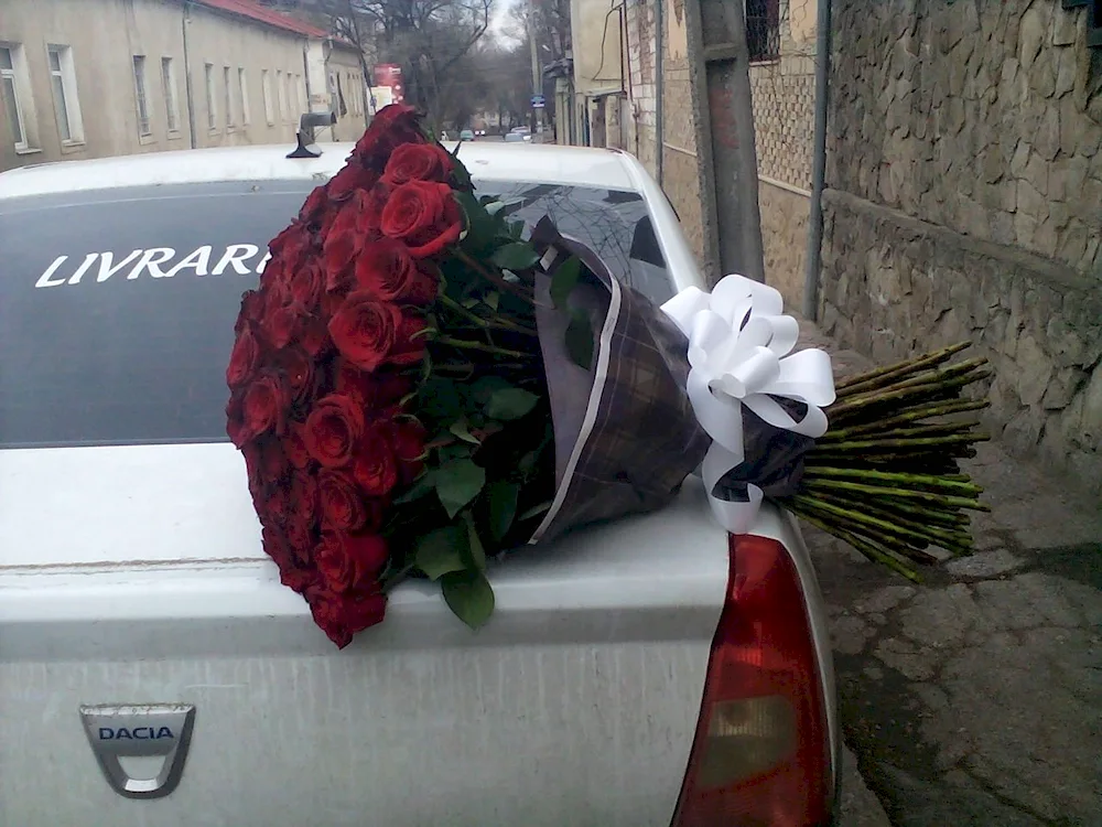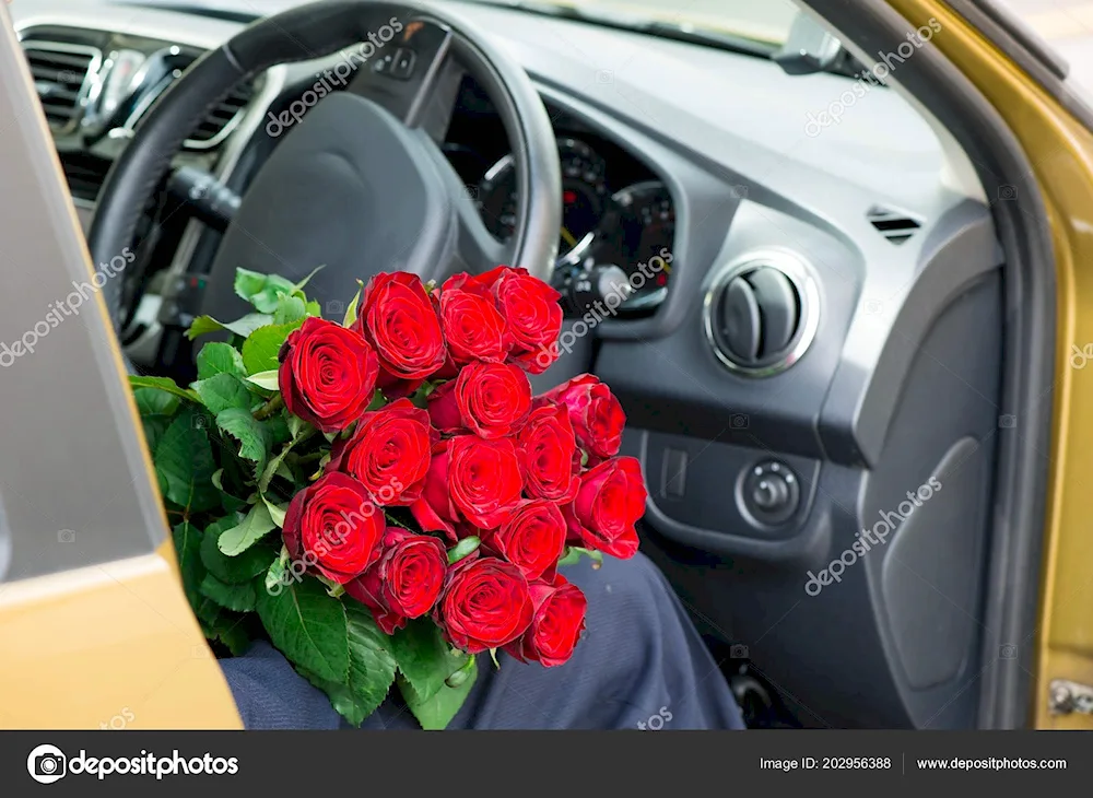 Roses in the car