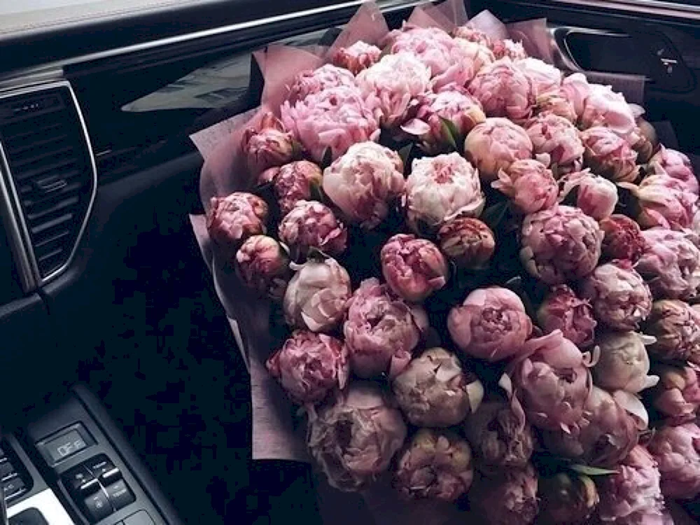 A bunch of flowers in the car