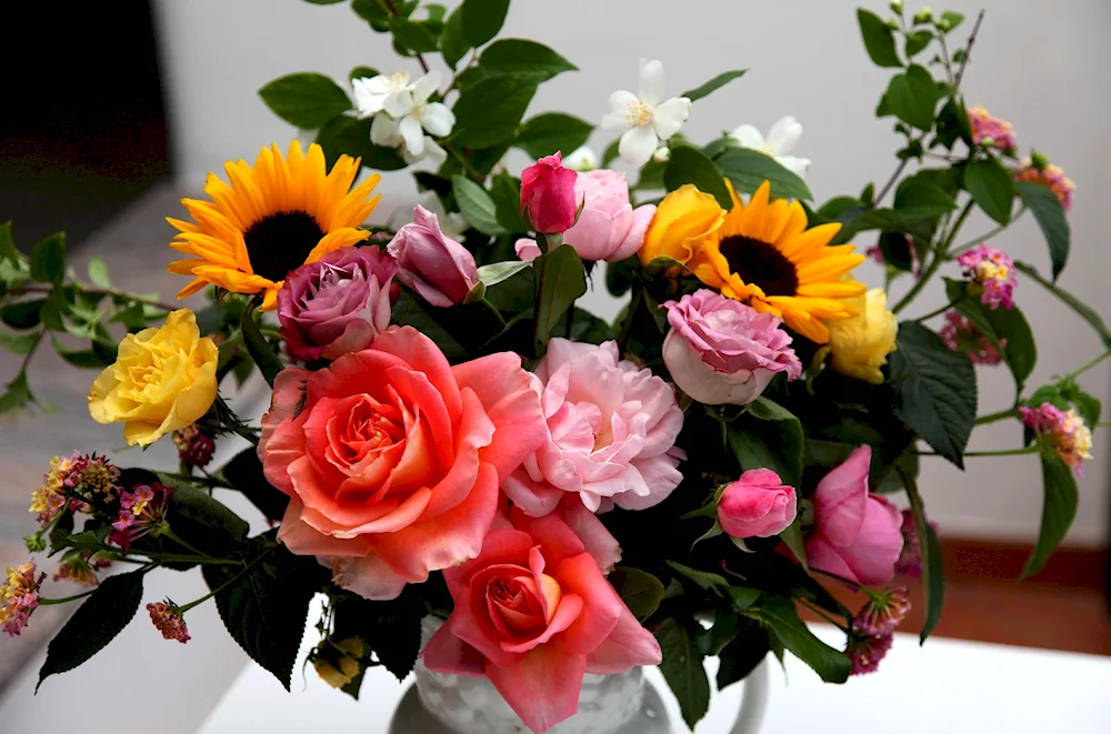 Bouquet of flowers picture Here are some lovely photos of a beautiful arrangement of flowers in a vase, showcasing vibrant colors and various types of blooms. The images capture the elegance and freshness of the bouquet, perfect for brightening up any room or occasion.