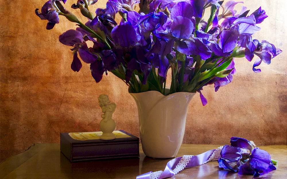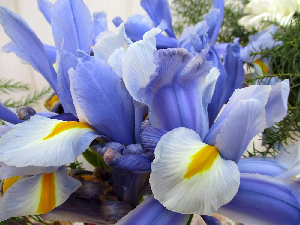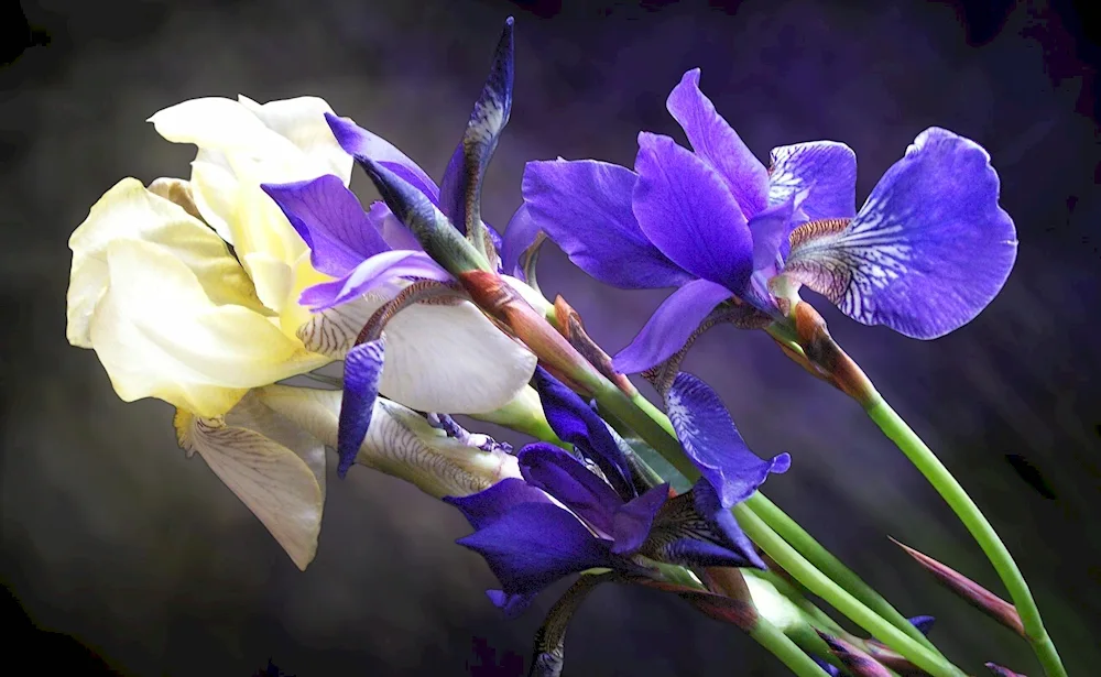 Collection of stunning images featuring a gorgeous bunch of purple irises, their delicate petals radiating natural beauty and elegance. Each photo showcases the vibrant colors and intricate details of these exquisite flowers, perfect for any nature lover or admirer of floral arrangements.
