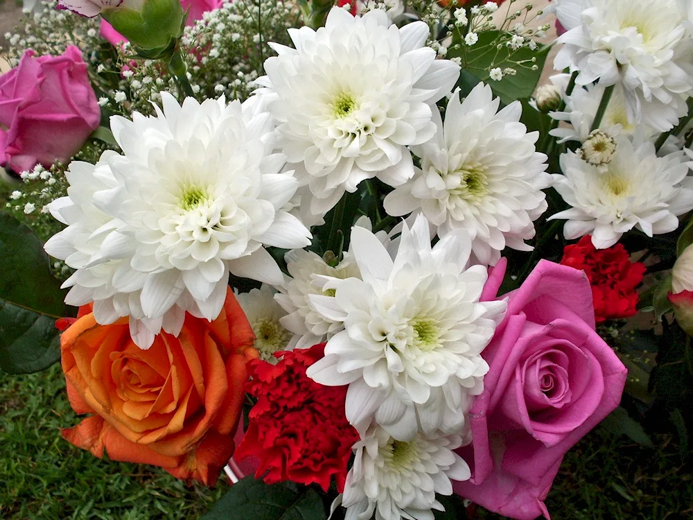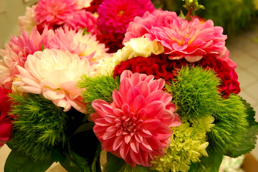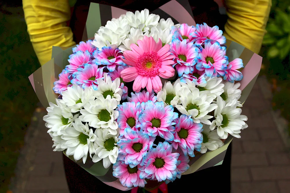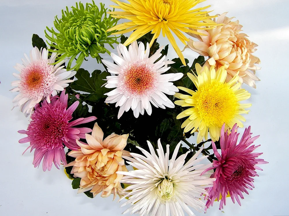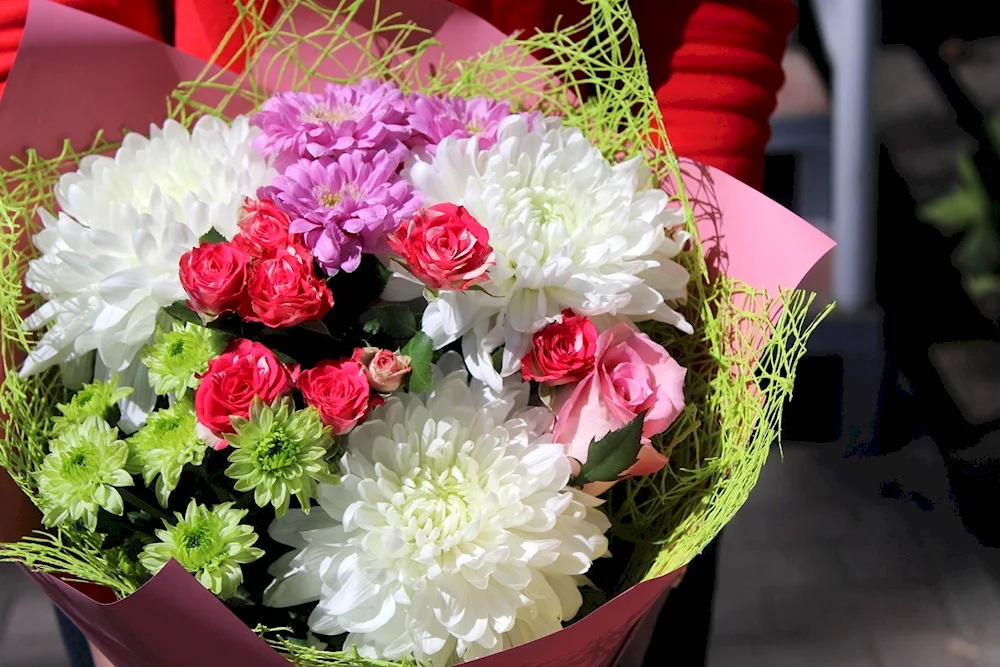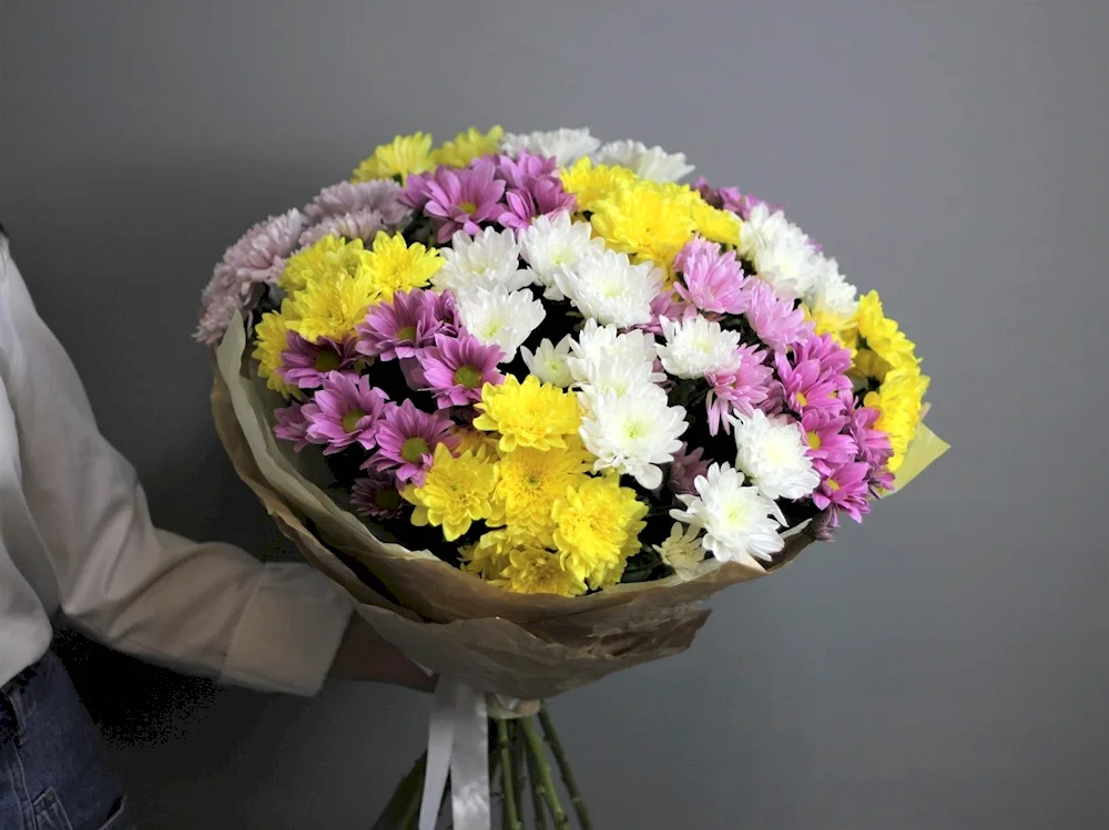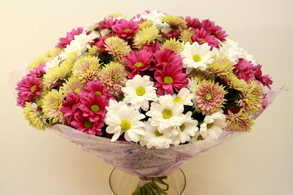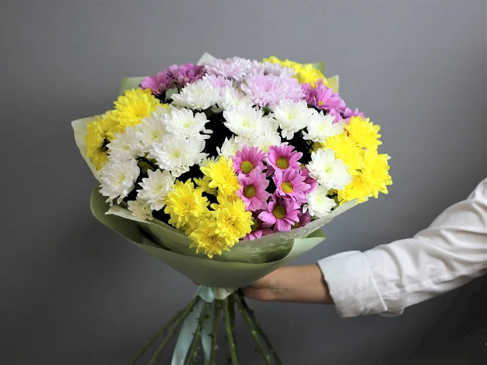 Photos of beautiful, vibrant chrysanthemums arranged in a stunning bouquet, showcasing their large and colorful petals. Each image captures the elegance and grace of these exquisite flowers, perfect for bringing joy and brightness to any space.