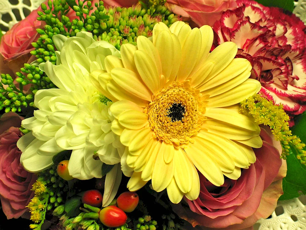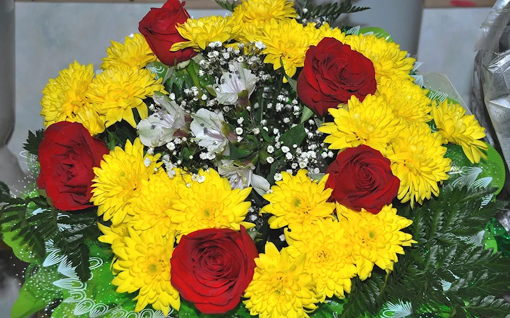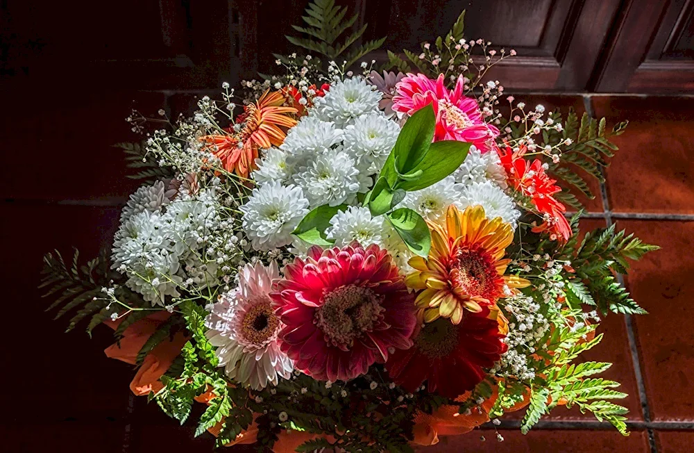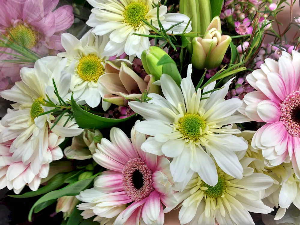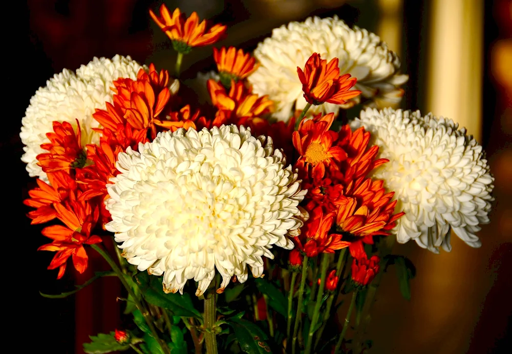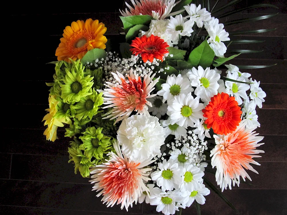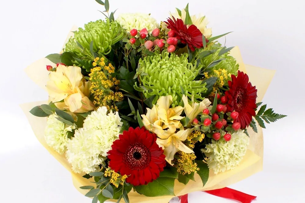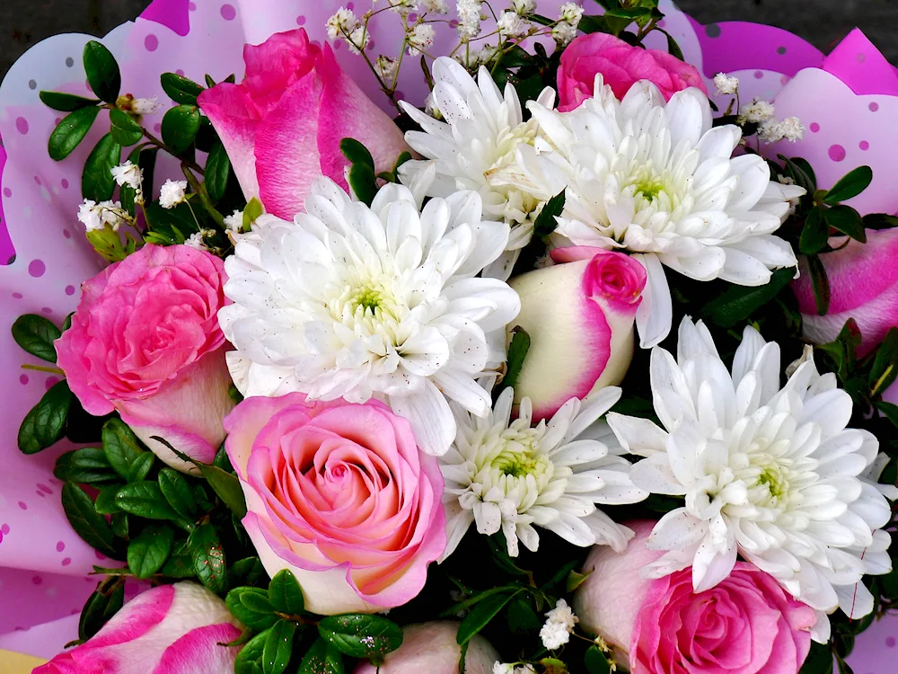 Photos of beautiful, vibrant chrysanthemums arranged in a stunning bouquet, showcasing their large and colorful petals. Each image captures the elegance and grace of these exquisite flowers, perfect for bringing joy and brightness to any space.