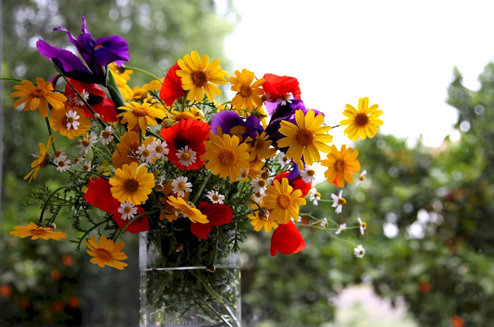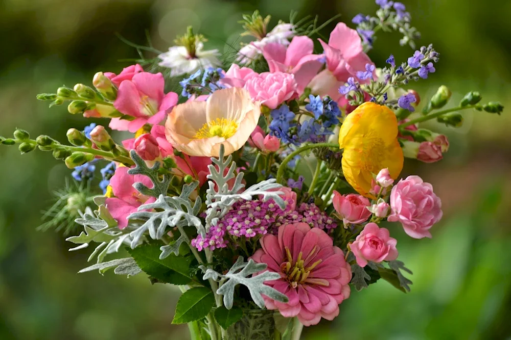 Bouquet of summer flowers Here are some beautiful photos capturing a collection of vibrant summer blooms. The images showcase a variety of colorful petals and lush foliage that will brighten up your day.