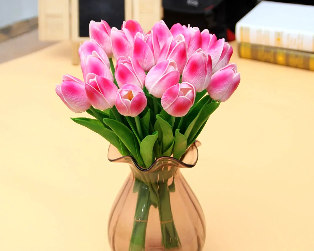 Check out these stunning pictures of a beautiful bunch of real tulips. The vibrant colors and delicate petals are sure to brighten your day!
