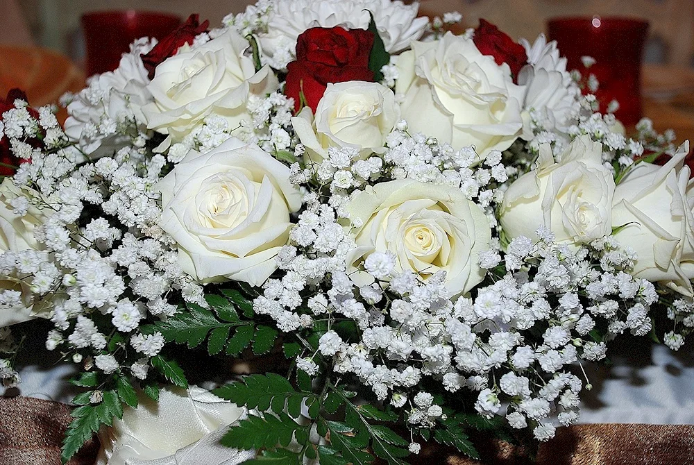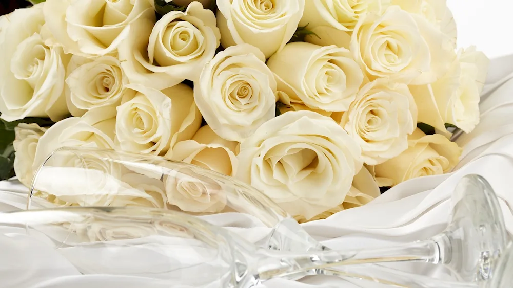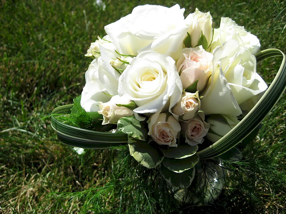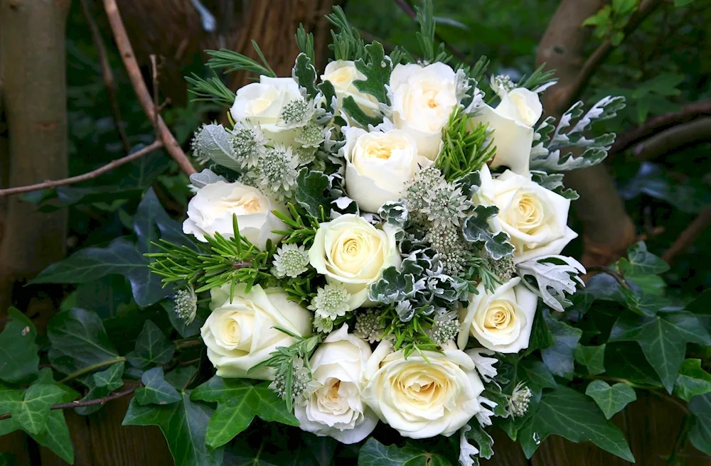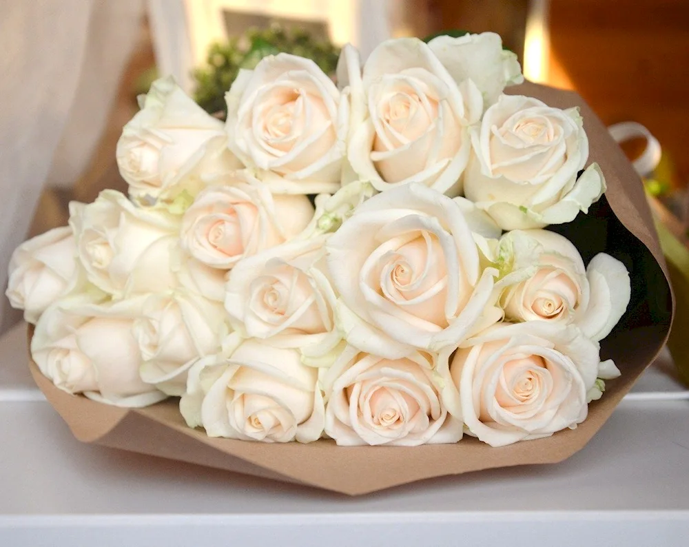 Bouquet of white roses Check out these stunning images of a bunch of white roses, showcasing their elegance and beauty. The photos capture the delicate petals and sweet fragrance, making it a perfect gift for any occasion.