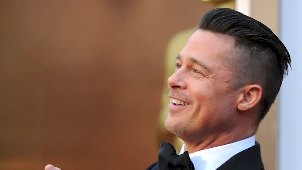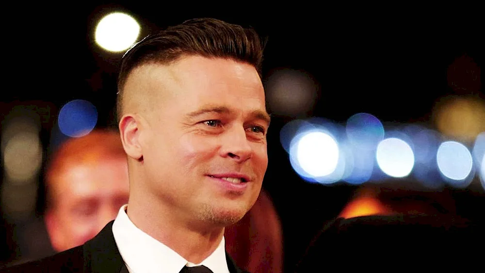 Brad Pitt's undercut hairstyle: featuring low tapered sides with longer hair on top, showcasing a sleek and stylish look perfect for any occasion. This selection of images displays different angles and variations of his iconic hairstyle, offering inspiration for anyone looking to achieve a similar look.