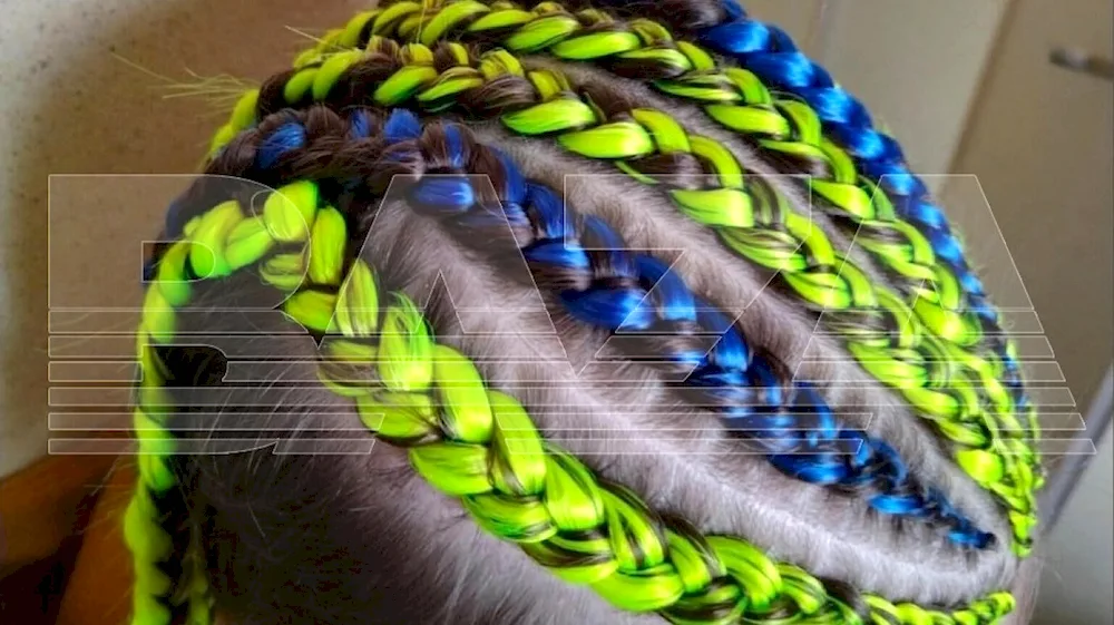 Braids for kids with kanekalon Kids' hair styled with colorful kanekalon braids, showcasing various intricate patterns and designs perfect for young girls. These images capture the beauty and creativity of braided hairstyles for children using kanekalon hair extensions.