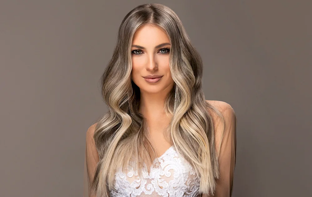 Brazilian Blonde on Dark Hair Photos of a Brazilian woman with blonde highlights in her dark hair, showcasing a beautiful contrast. The images capture the unique and stunning look of blending blonde and dark hair on this Brazilian beauty.