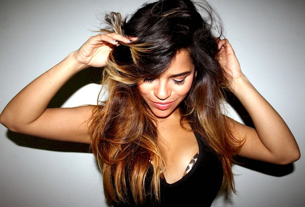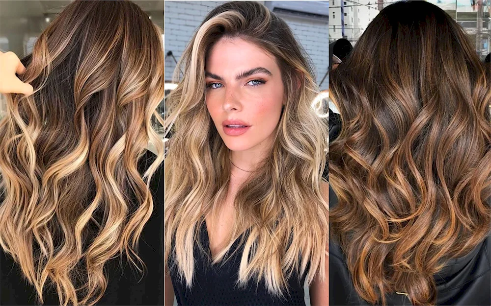 Photos of Brazilian shatush on dark hair showcase stunning caramel highlights seamlessly blended into the hair, creating a beautiful sun-kissed effect. These images capture the perfect balance between natural and vibrant tones, enhancing the richness and depth of dark hair.