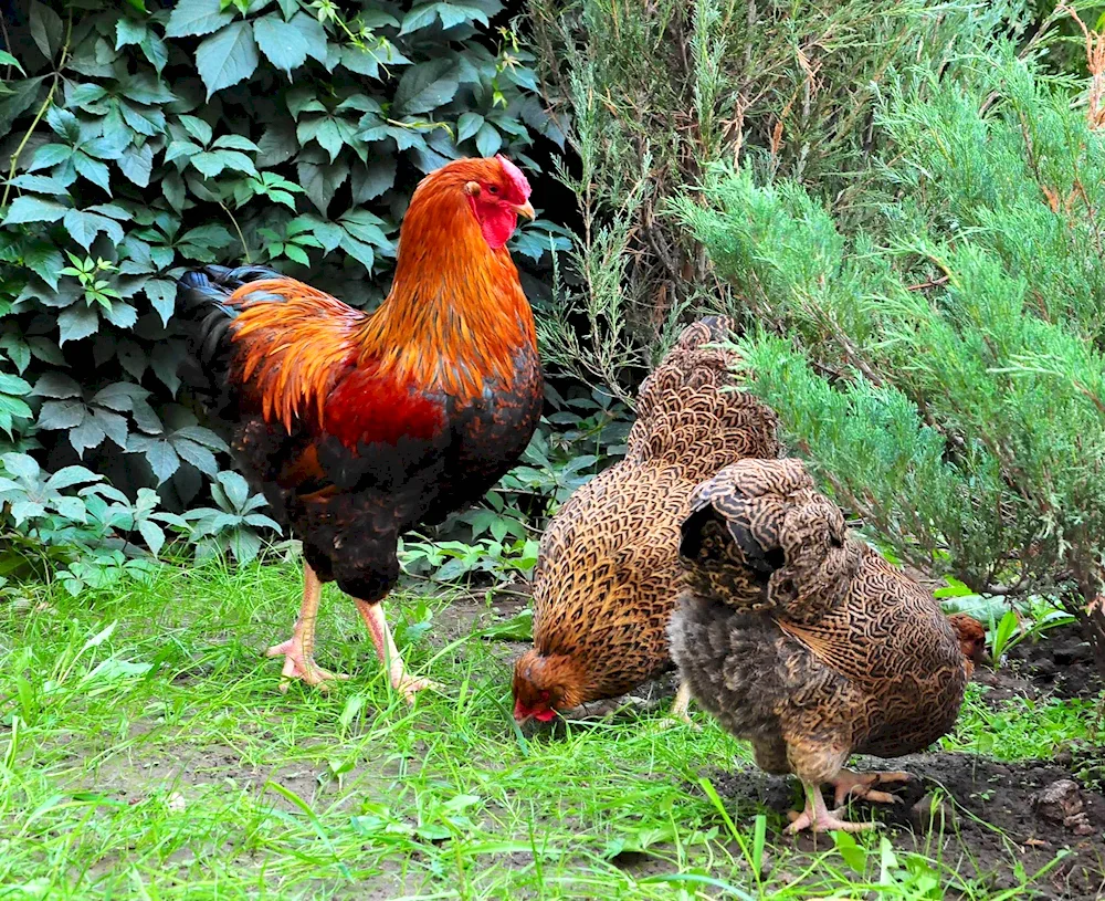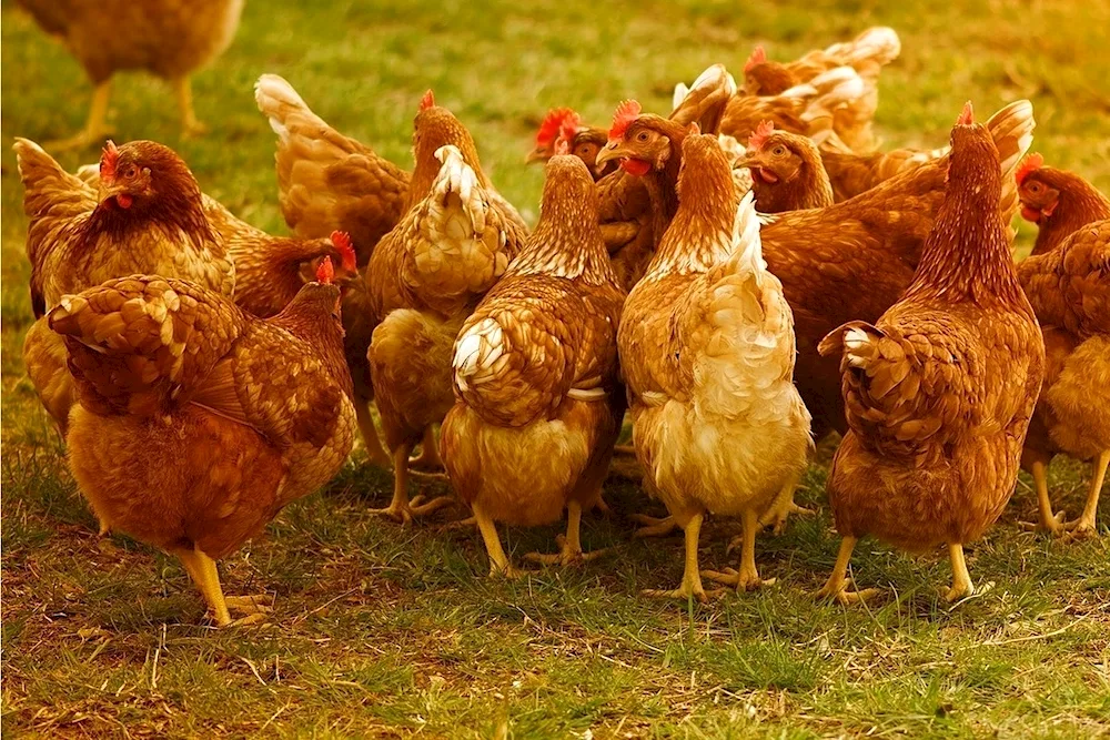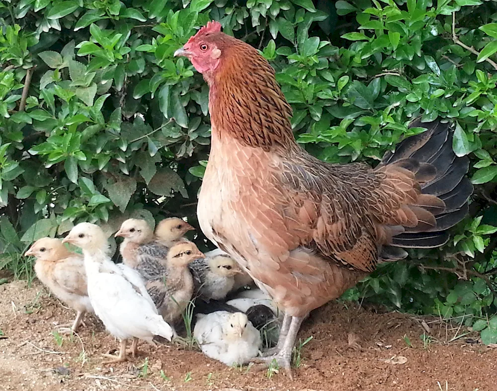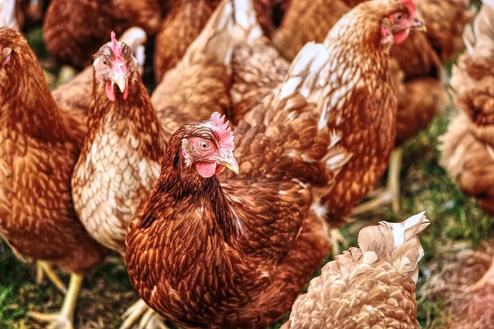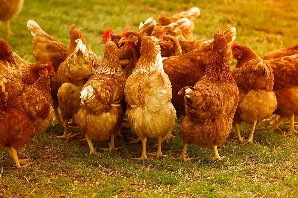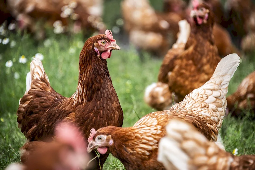 Different types of laying hens are shown in the selection of photos, showcasing various breeds like Rhode Island Reds, Leghorns, and Australorps. Each image highlights the unique characteristics and colors of these poultry breeds, perfect for anyone interested in raising backyard chickens.