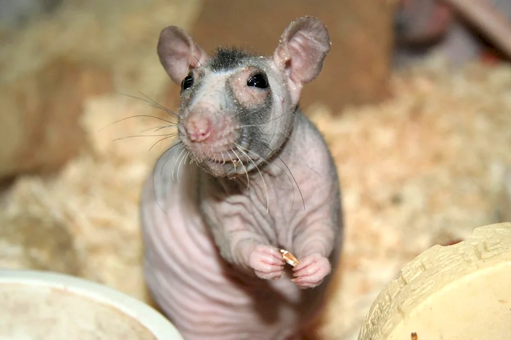 Varieties of pet rats including Dumbo, Hairless, and Rex breeds. Each rat has unique physical characteristics and fur textures.