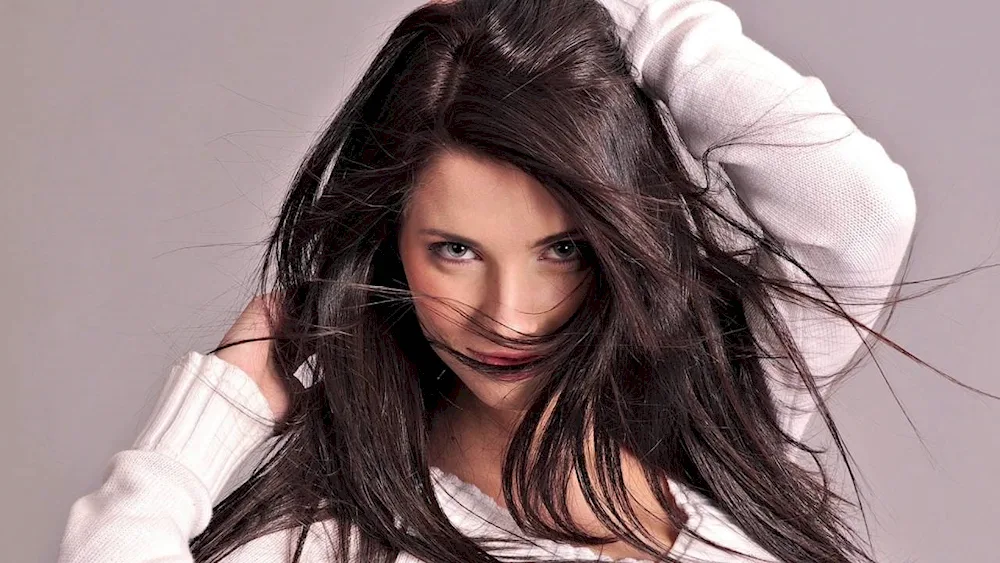 Brunette with long hair Check out these stunning pictures of a dark-haired woman with flowing locks. See how her brunette hair cascades down her back in beautiful waves, showing off its length and shine.