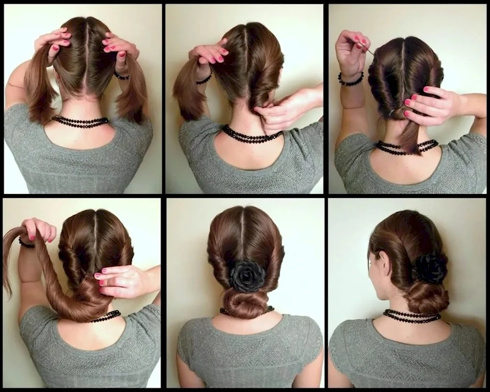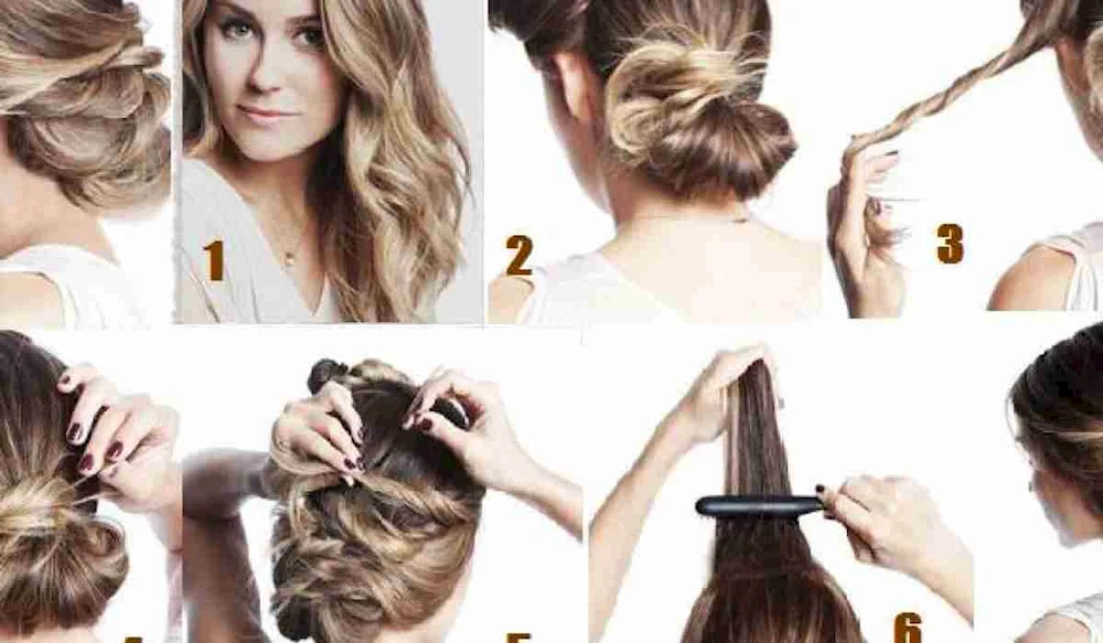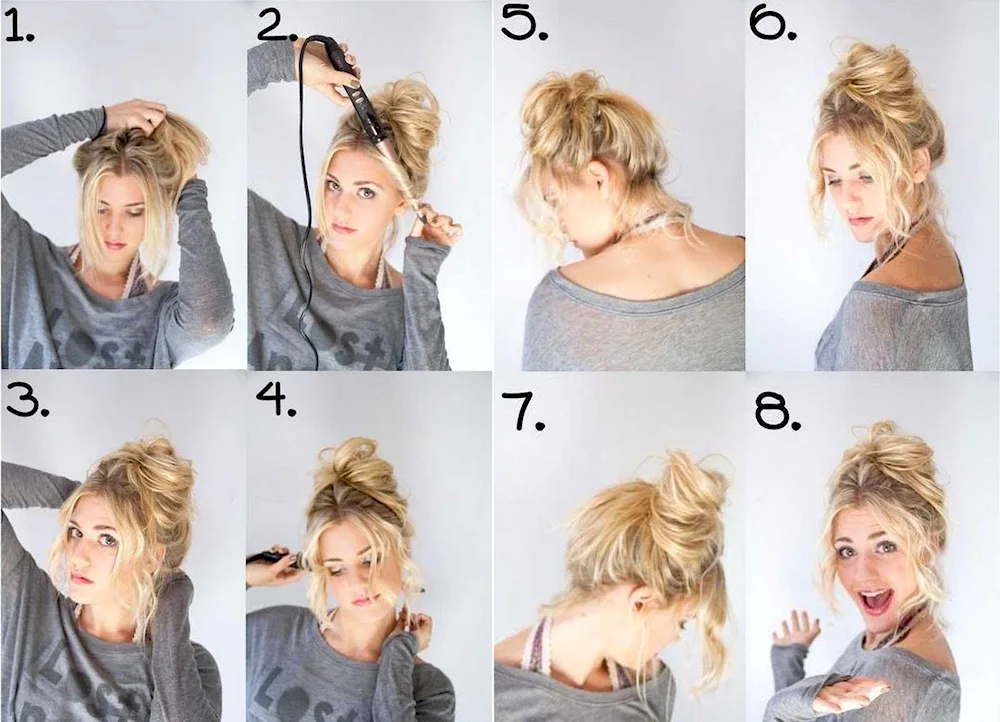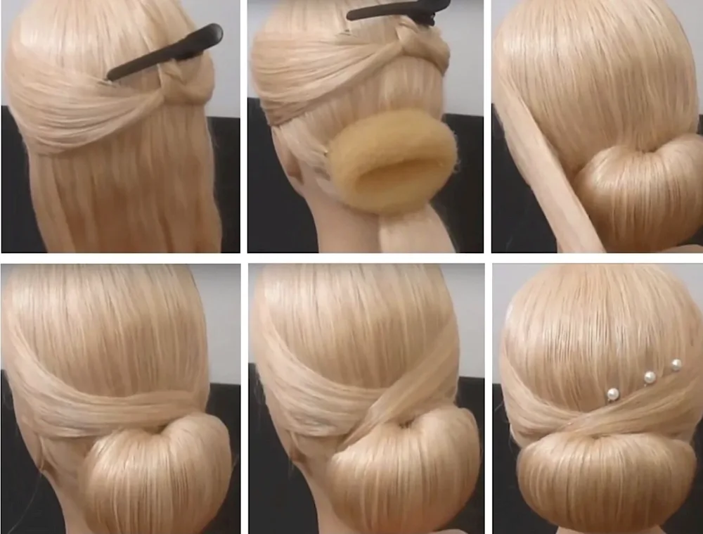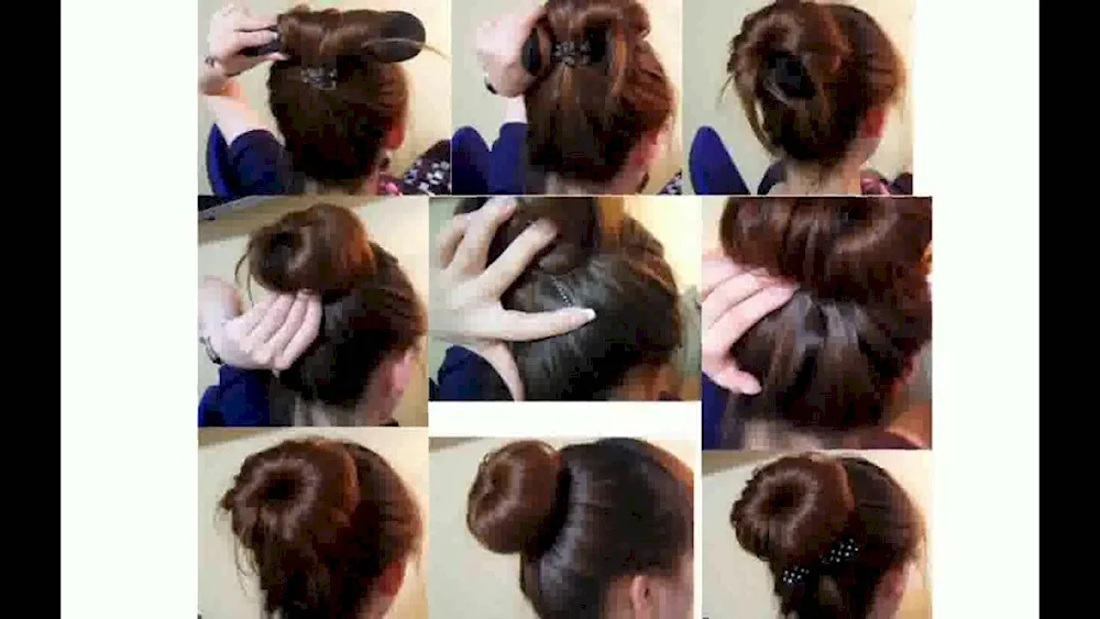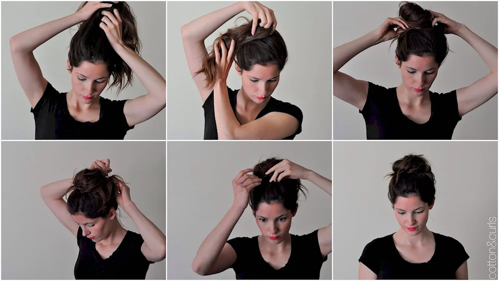 Step by step guide on how to create a cute bun for your short hair. The images show each stage of the process, making it easy to follow along and achieve the perfect look.