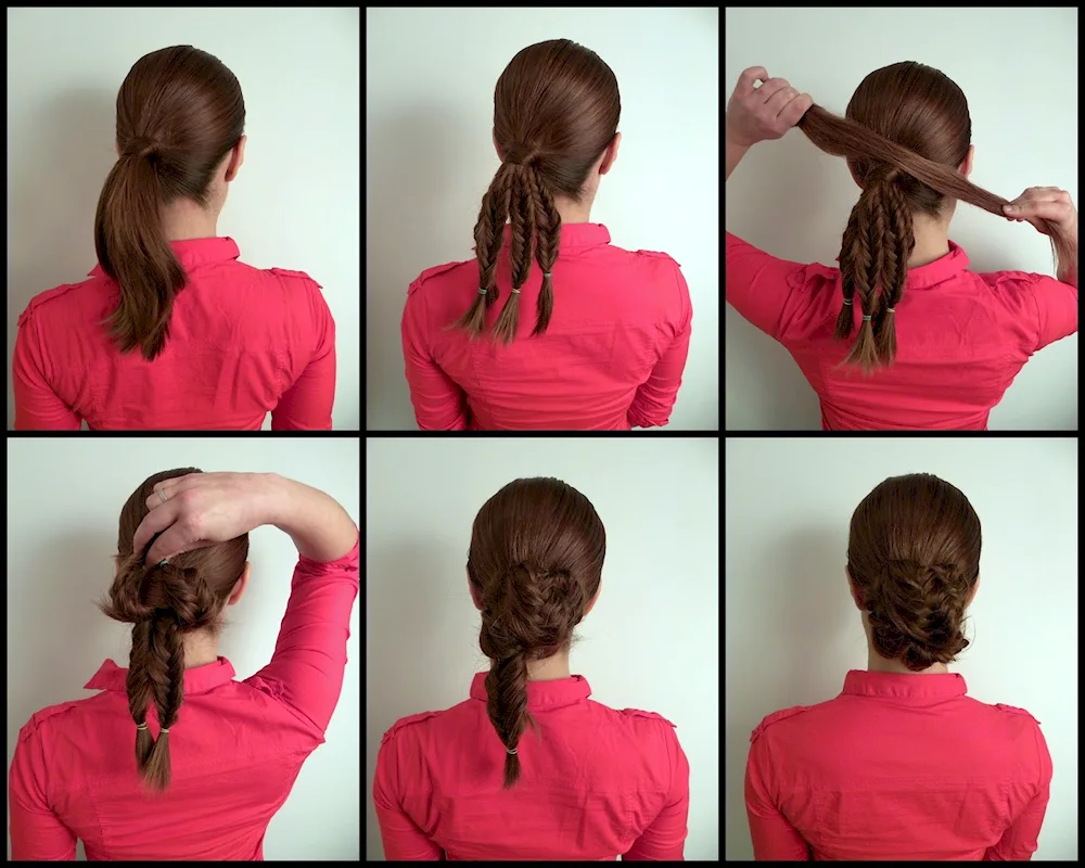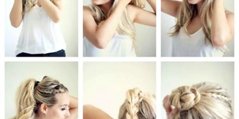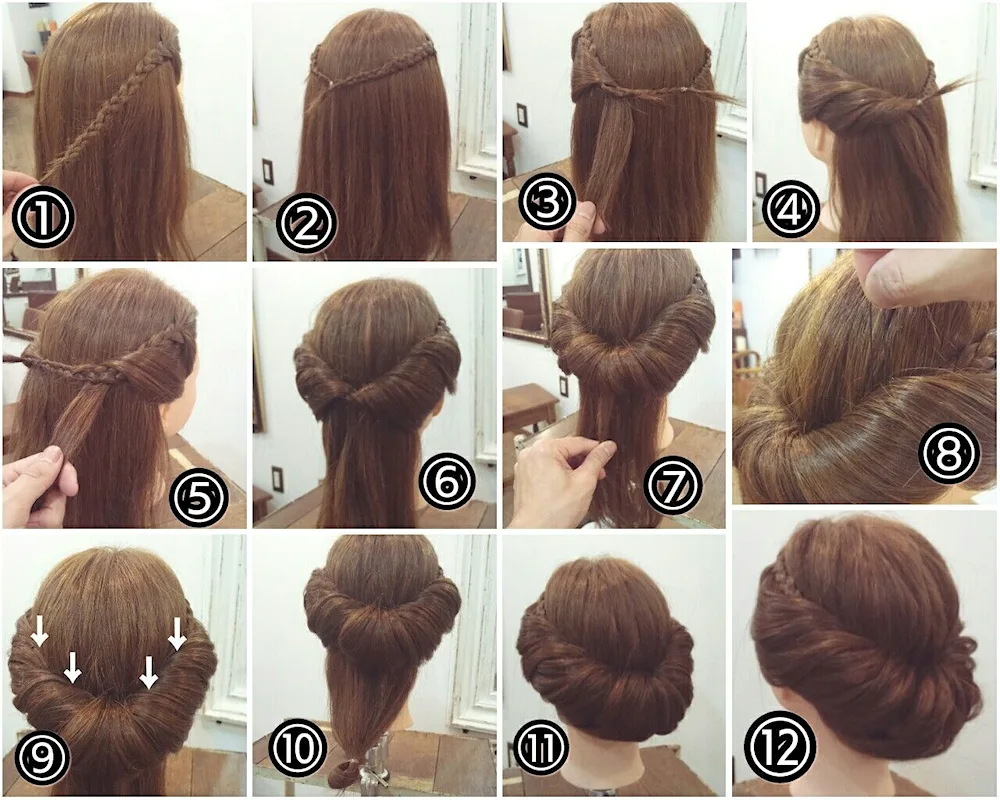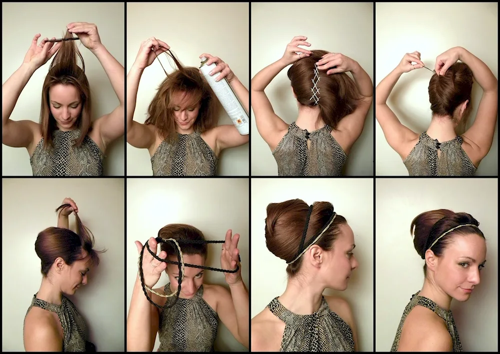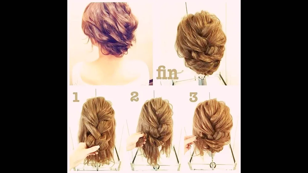 Step by step guide on how to create a cute bun for your short hair. The images show each stage of the process, making it easy to follow along and achieve the perfect look.