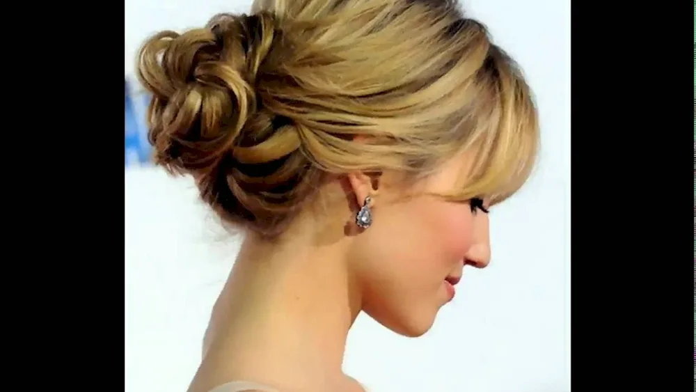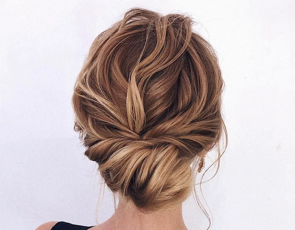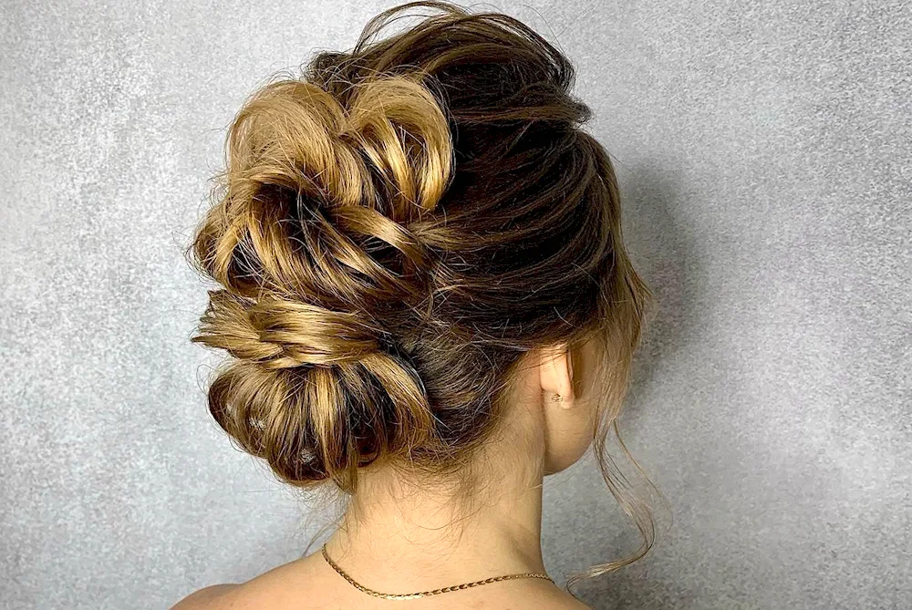 Medium hair bun styling inspiration: A sleek low bun with face-framing tendrils, a messy top knot with wispy bangs, and a twisted side bun with a delicate hair accessory. Get ready to elevate your hairstyle game with these effortlessly chic bun ideas!