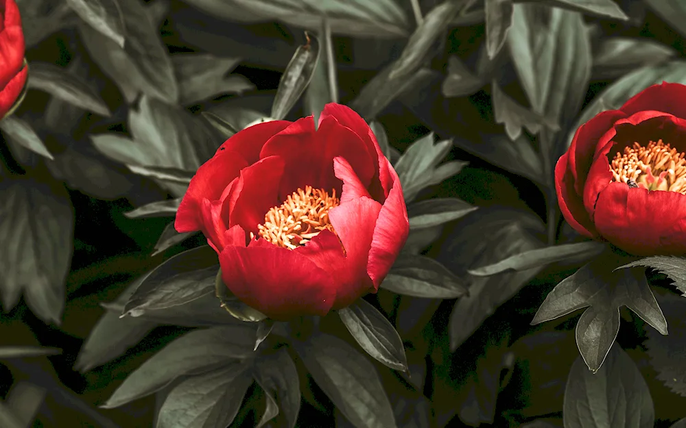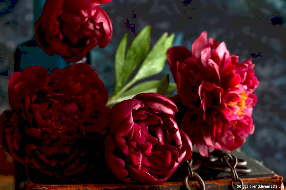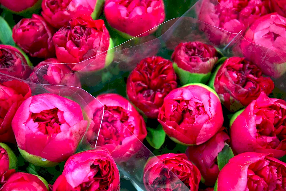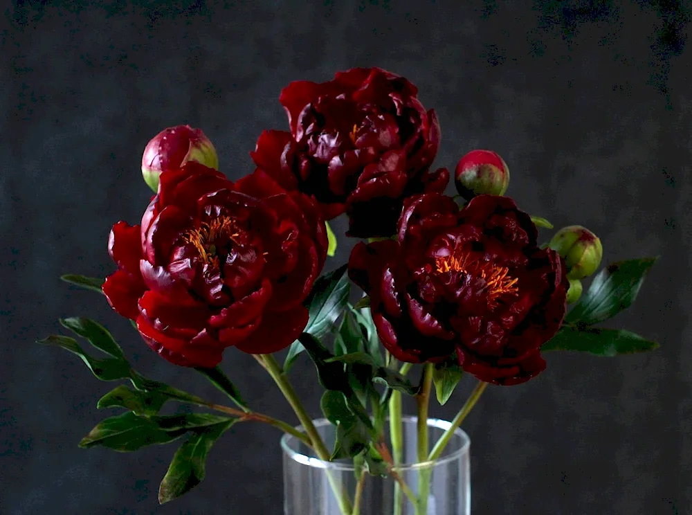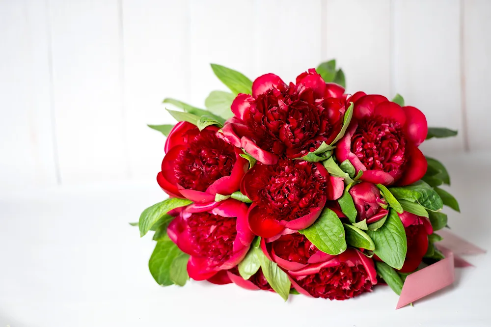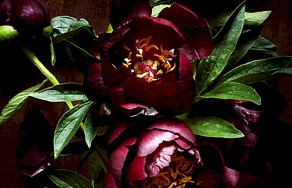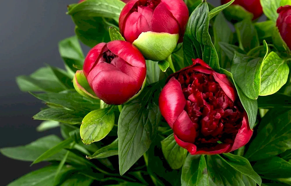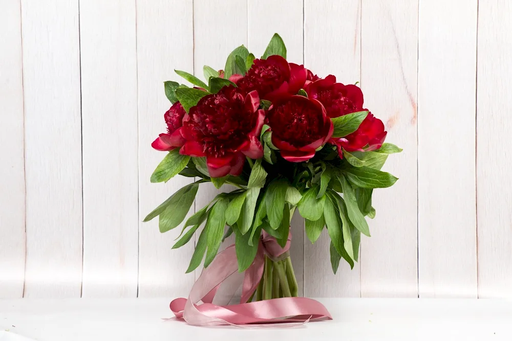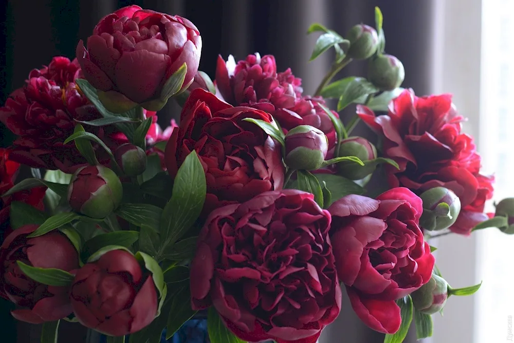 Burgundy Peonies Here are some lovely pictures of deep red peonies from the Burgundy region for you to enjoy. The rich, velvety petals and lush green leaves make these flowers a stunning addition to any garden or bouquet.